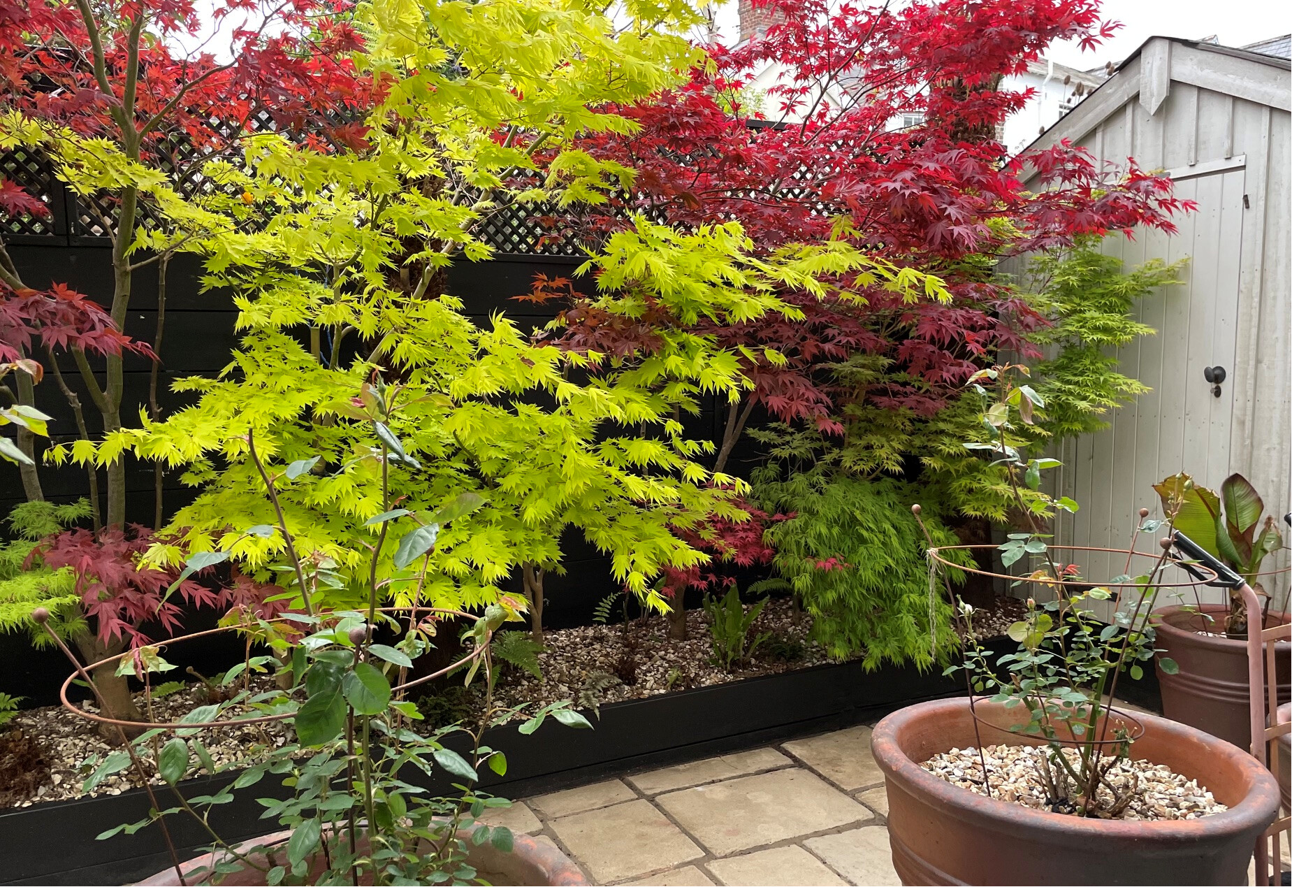 Meanwhile, in the backyard the acers are all out and I’ll wager I’ll have my first rose unfurling this weekend – the pure white ‘Desdemona’ (David Austin). Again, so early.