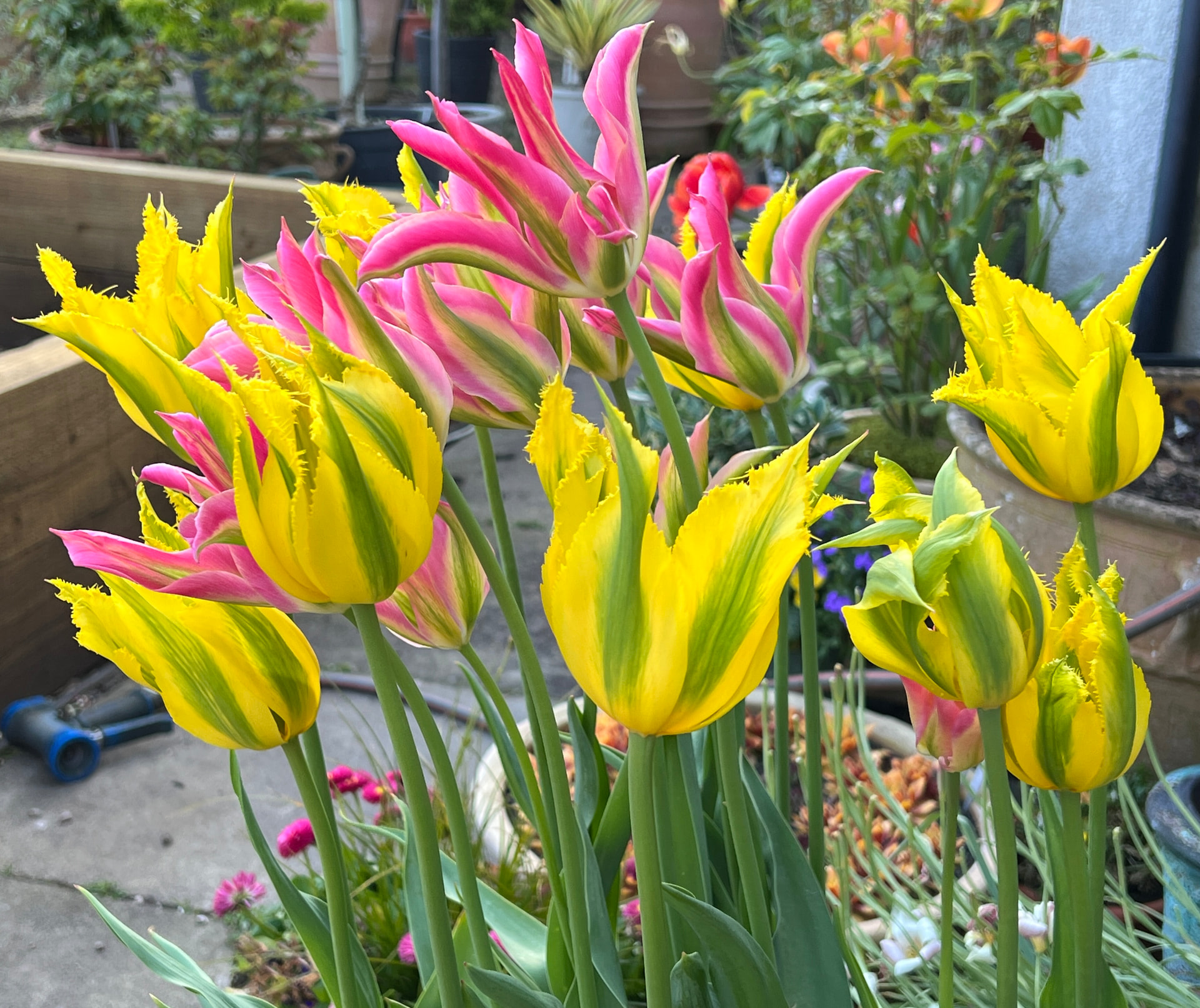My front garden is mainly about Spring bulbs , then as the season moves I grow a lot of herbs and in the peak of Summer it’s about food , potatoes, veggies and chillies