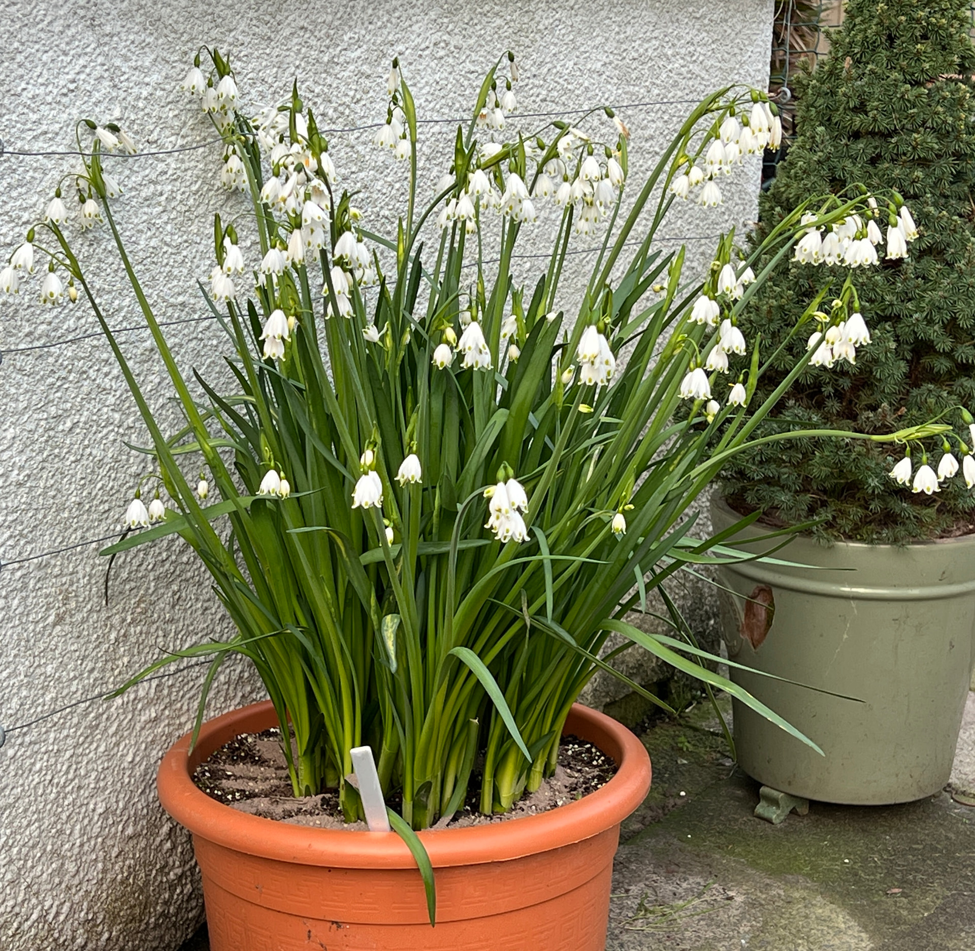 Leucojum gravetye giant been flowering for 2 weeks now. Good value impact and comes back each year bigger.