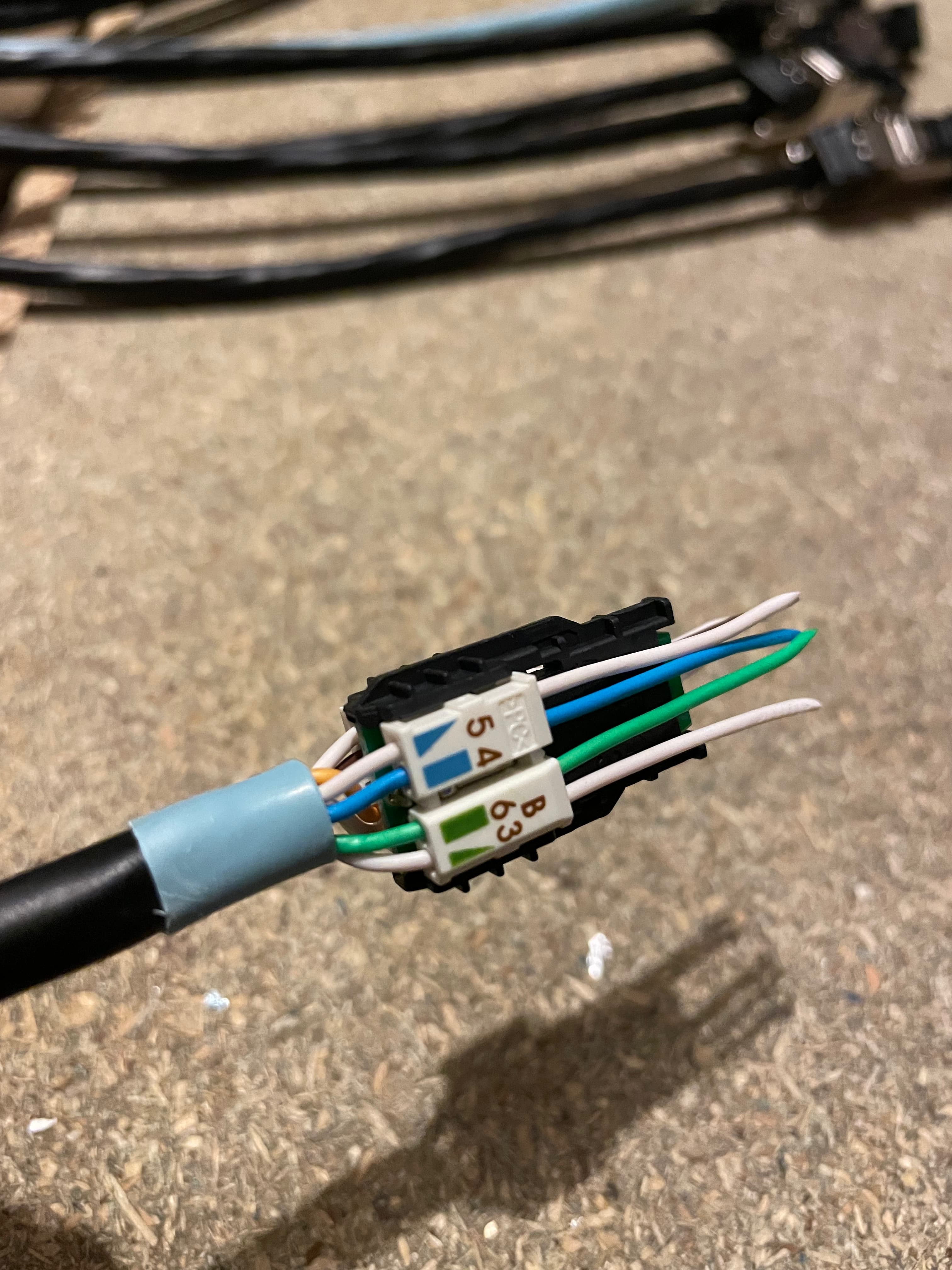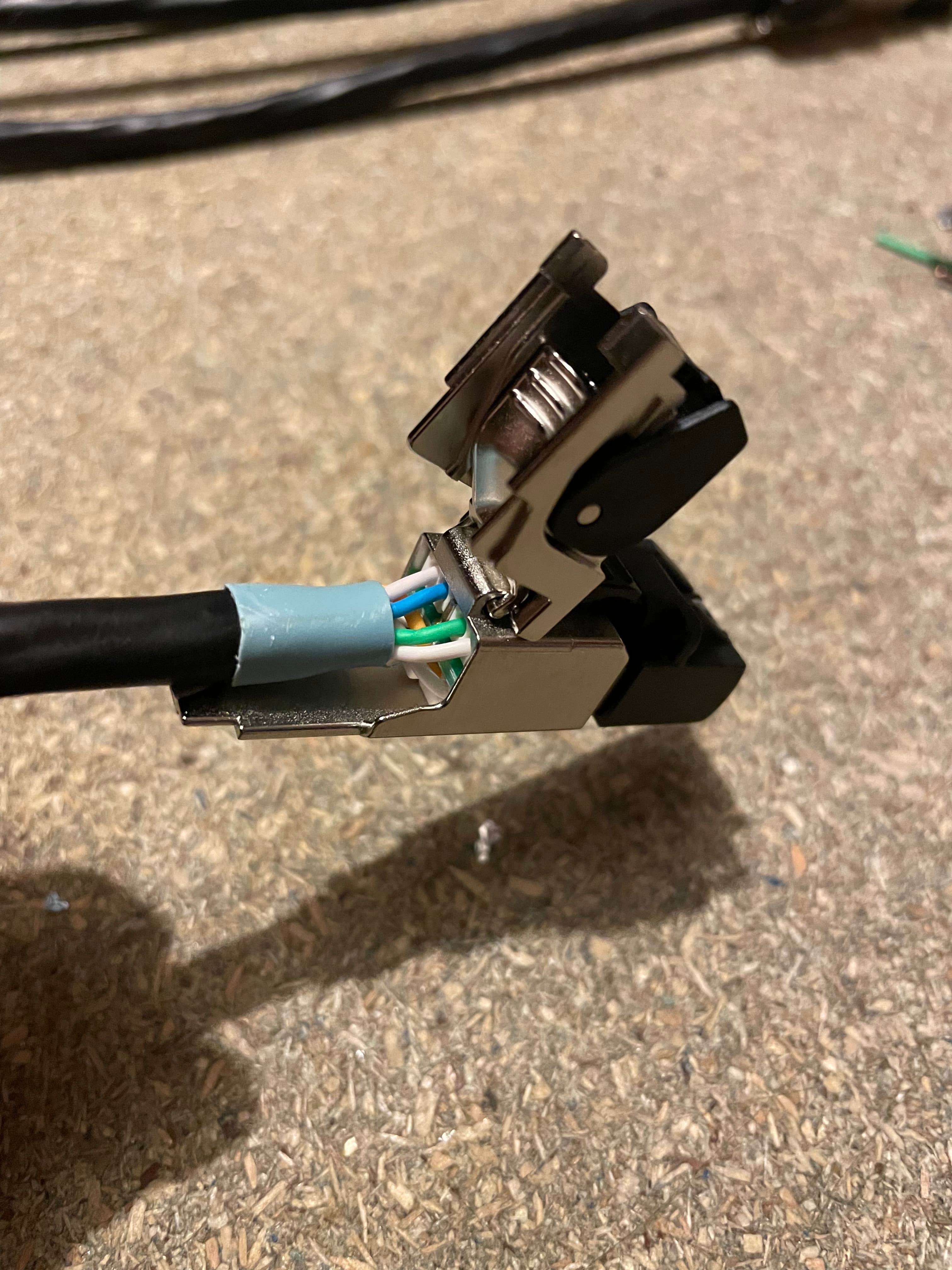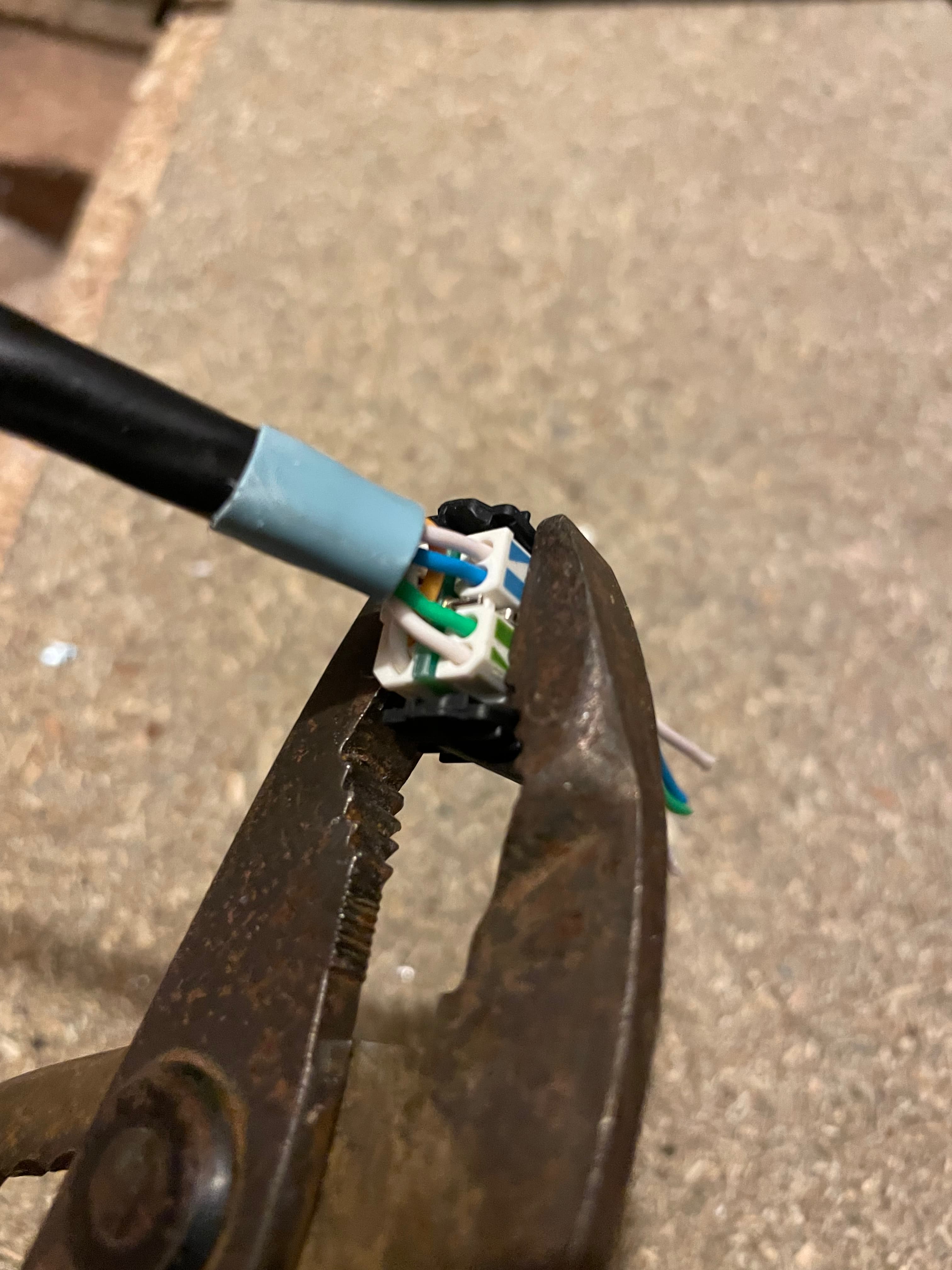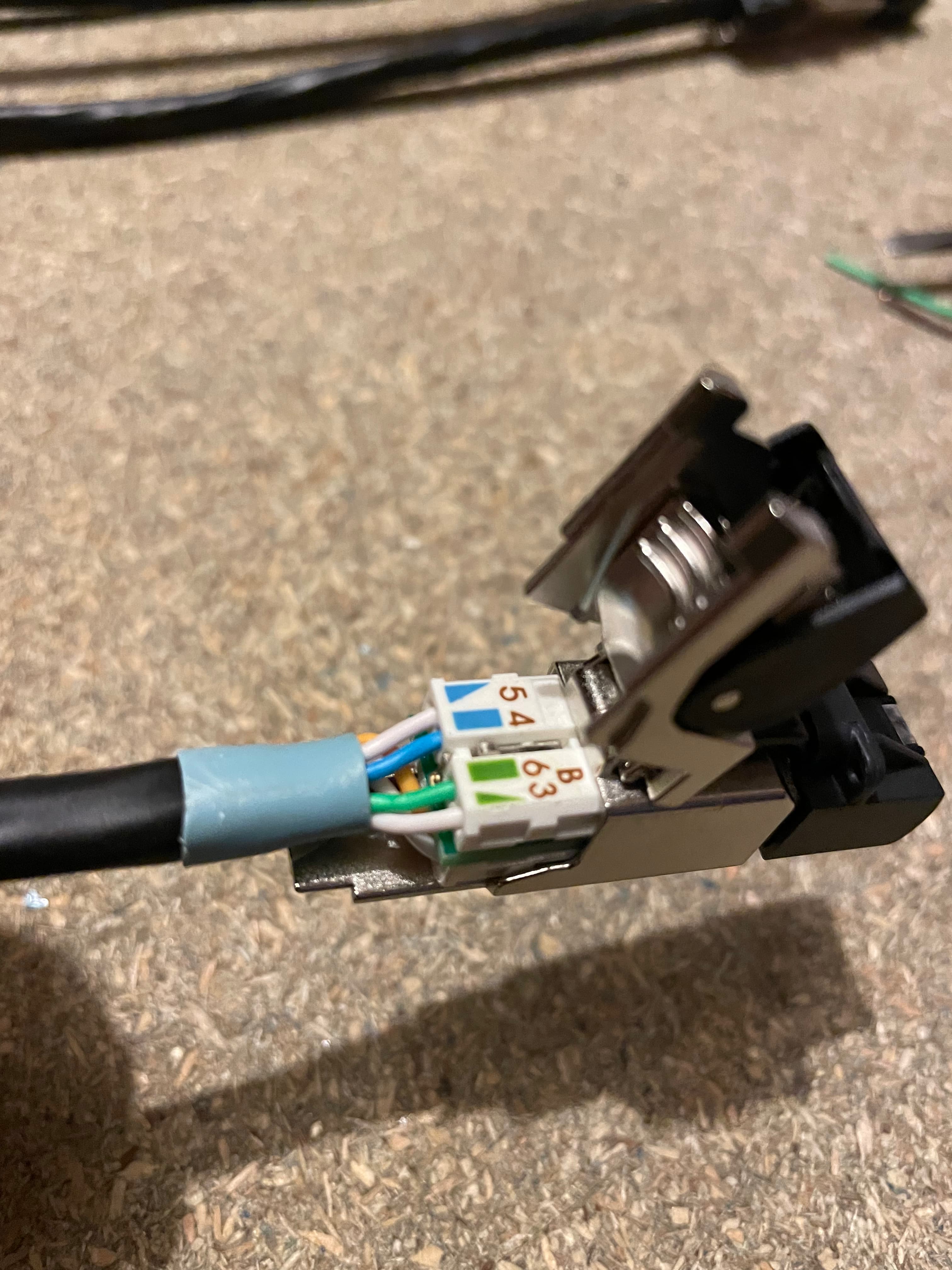 Firstly I’m using Excel branded Cat6A cable and Telegartner plugs. The black Excel cable is external graded and the cyan the internal version. Internally you can use either but don’t use internal grade outside, it wont last long. There are many alternatives, I cant tell you if these are better or worse than others, just that they are extremely high quality items. I buy cable on 500m drums but you can get shorter lengths online.