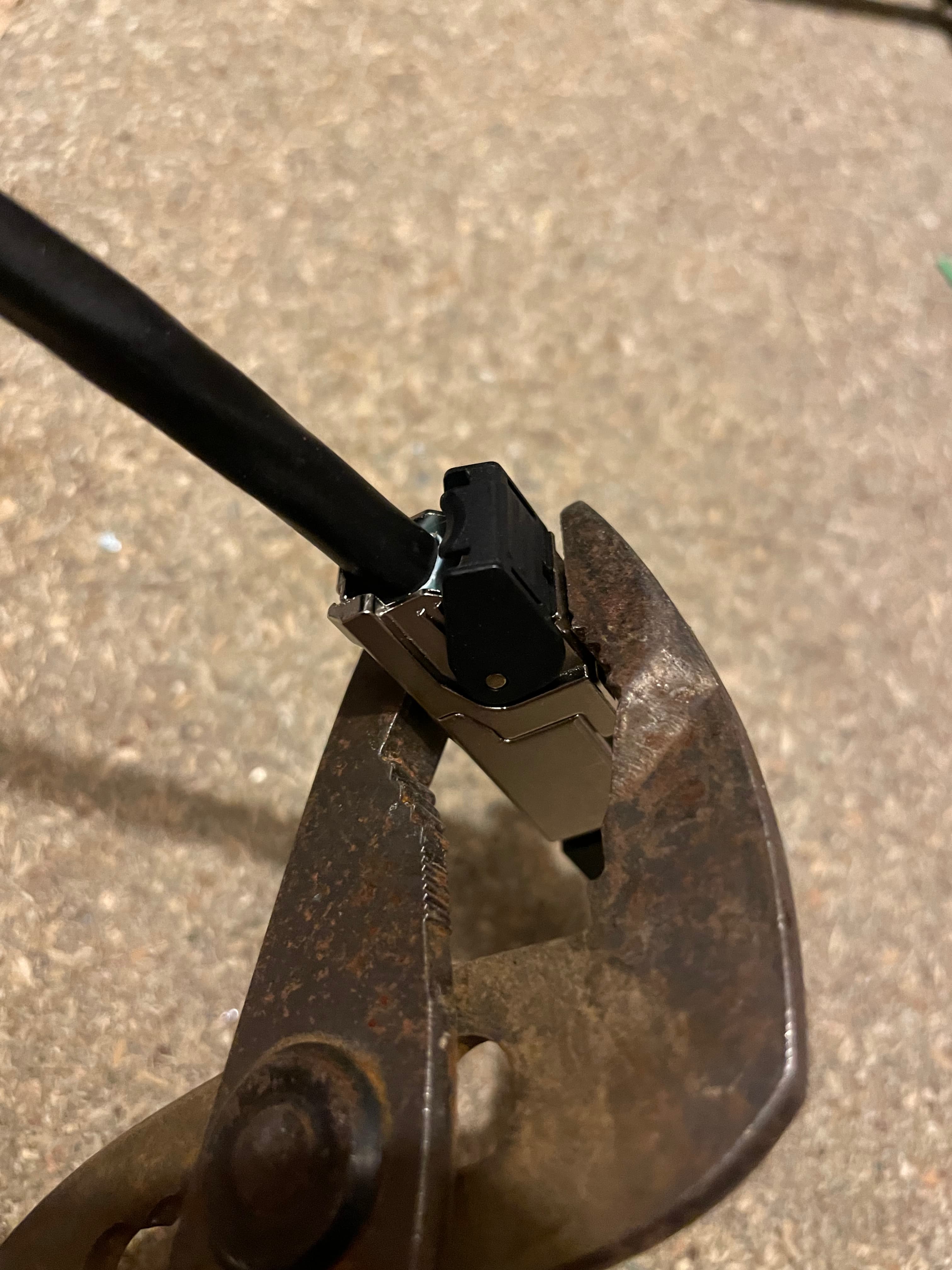 Finally carefully squeeze the cable clamp shut noting its easy to do this too tight, all done! Shown with the end dust cap removed.