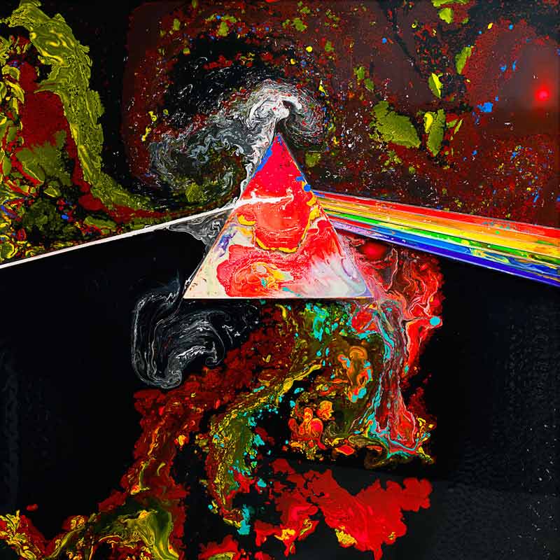 Thorgerson’s design for the cover of Pink Floyd’s The Dark Side of the Moon, as he puts it, “offers fertile revisiting”. Here, he applies a process developed for an album cover for Powderfinger to the infamous artwork to stunning effect.