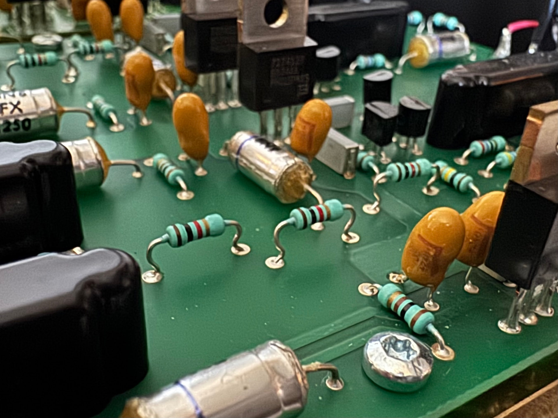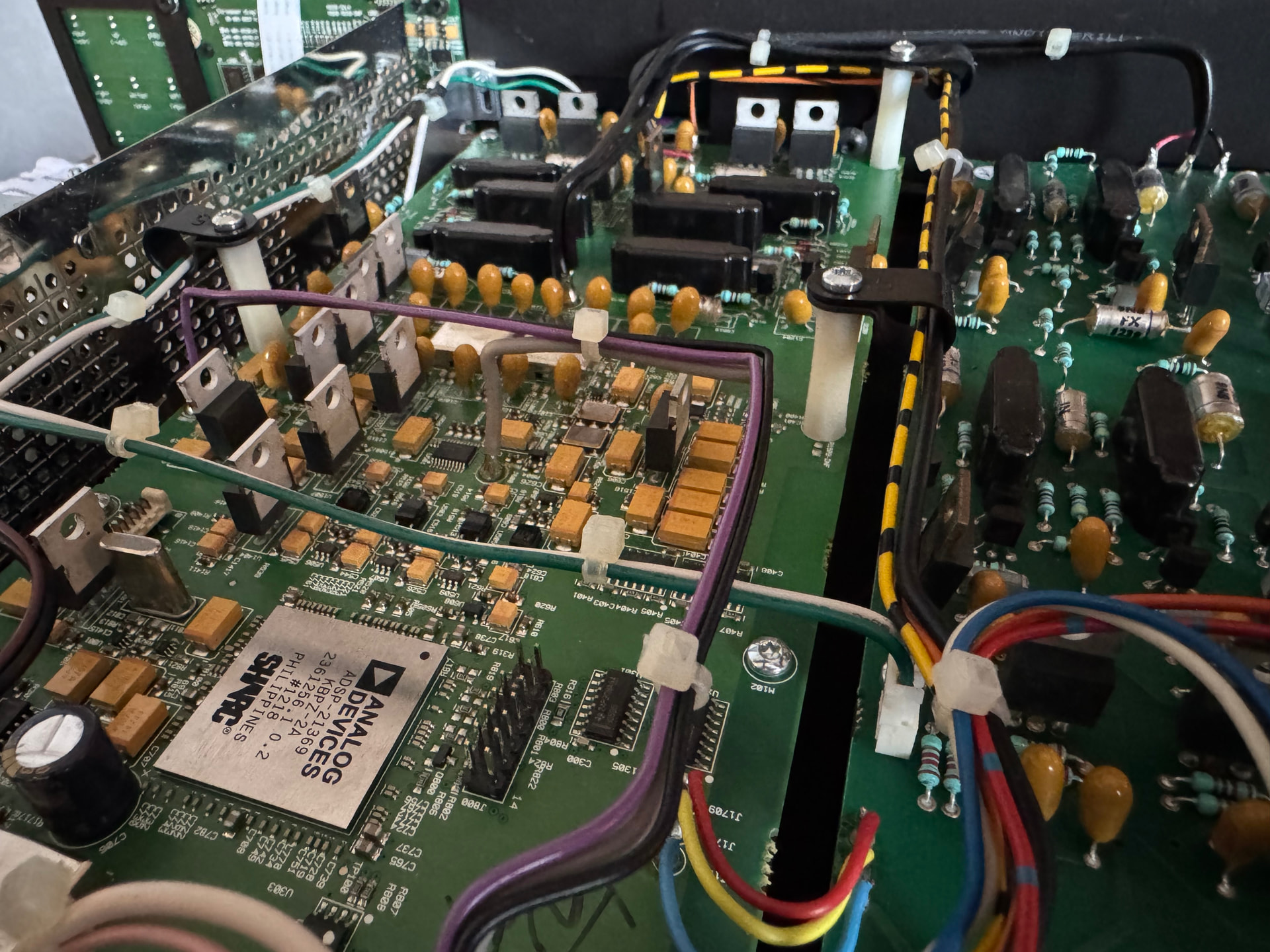 And here you see the Chassis/Floating switch and its ground wire. There you see that you simply connect ground to the chassis pushing the switch. You also see RCA and DIN next to each other and their green ground wires. The RCA ground wire is shared between right and left channel.
