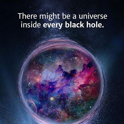 Imagine the possibility that our big bang was actually the creation of a giant black hole in a universe above us, with energy from that universe pouring into the hole and inflating it. What’s fascinating to me about this concept, is that this could mean that our universe is both a singularity, a single infinite point in space where time and distance don’t exist, as well that it could exhibit emergent (holographic) properties which we can experience as a real three (or more) dimensional space.