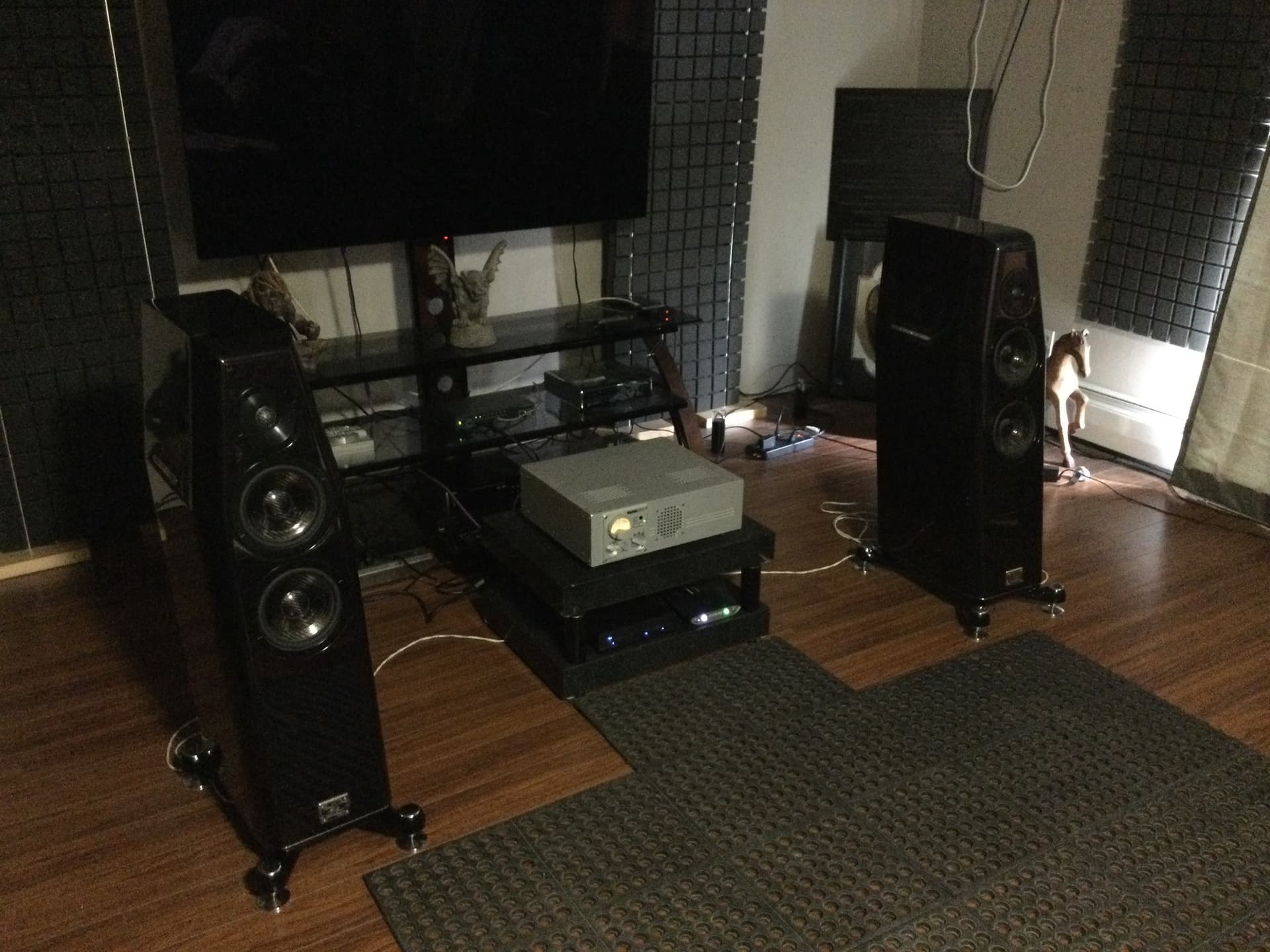 As some pointed recently in another thread ( Ā« source first Ā« ), the key is to find the best matching speakers / room / amp which will work the best in our room. Then improve with some room acoustics, but lightly, and isolation devices.
