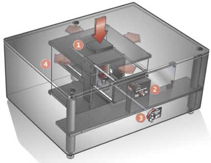 The Woodpecker is rather heavy with about 18-20kg, and seems to be constructed with heavy mass mfd deck as a principle to stave of vibrations. But I can’t see that the feets have very much of dampening function. They do have a rubber finish, but this act more like a suction cup than dampening in my view… which is a bit annoying for slight adjustments.