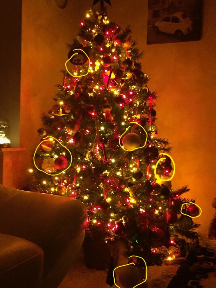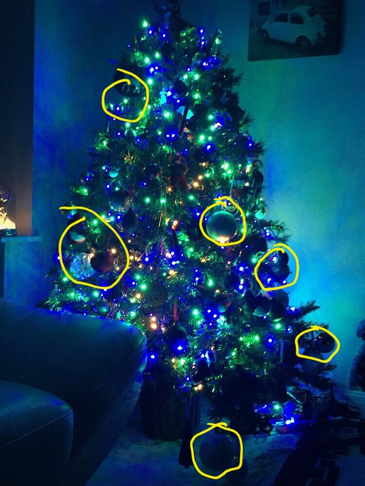 I thought I had one when I played Spot The Difference between the two but it wasn’t - the same bauble was there but lit better in the green pic.