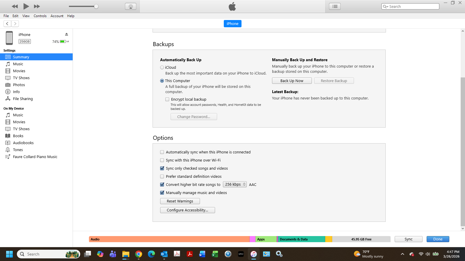 I never sync; I copy files manually. And I hope never to have to do any more copying. During the past 10+ years, I only once added files from my computer, when my storage went from 64GB to 128GB. Now it’s at 256GB, so I decided to start from scratch and build a new library. If I want to do it again in 10 years, I assume AI will do the whole thing for me.