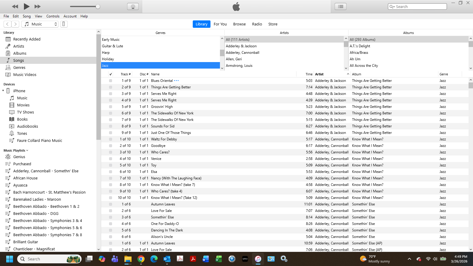 Most notably, of course, my FLAC files, now the majority of my collection, were unavailable. Fortunately, I still have a satisfactory selection of music in ALAC to choose from. In some cases I used JRiver to convert my FLAC files to ALAC, downloaded them and then deleted the ALAC versions. (That will probably screw me up in the future, although I’m not sure I will ever go through this again.)