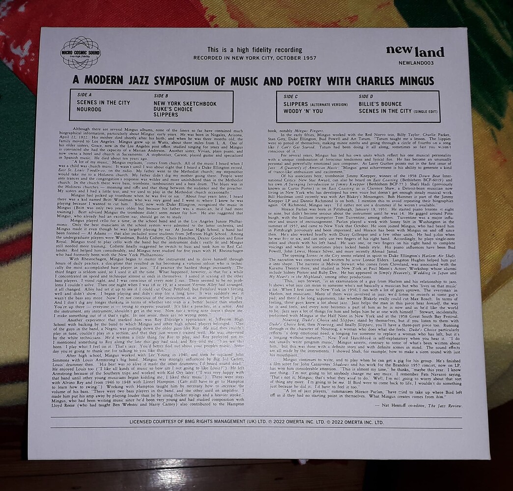 A Modern Jazz Symposium Of Music And Poetry With Charles Mingus (credited as Charlie on the front cover for some reason) (New Land/Bethlehem)