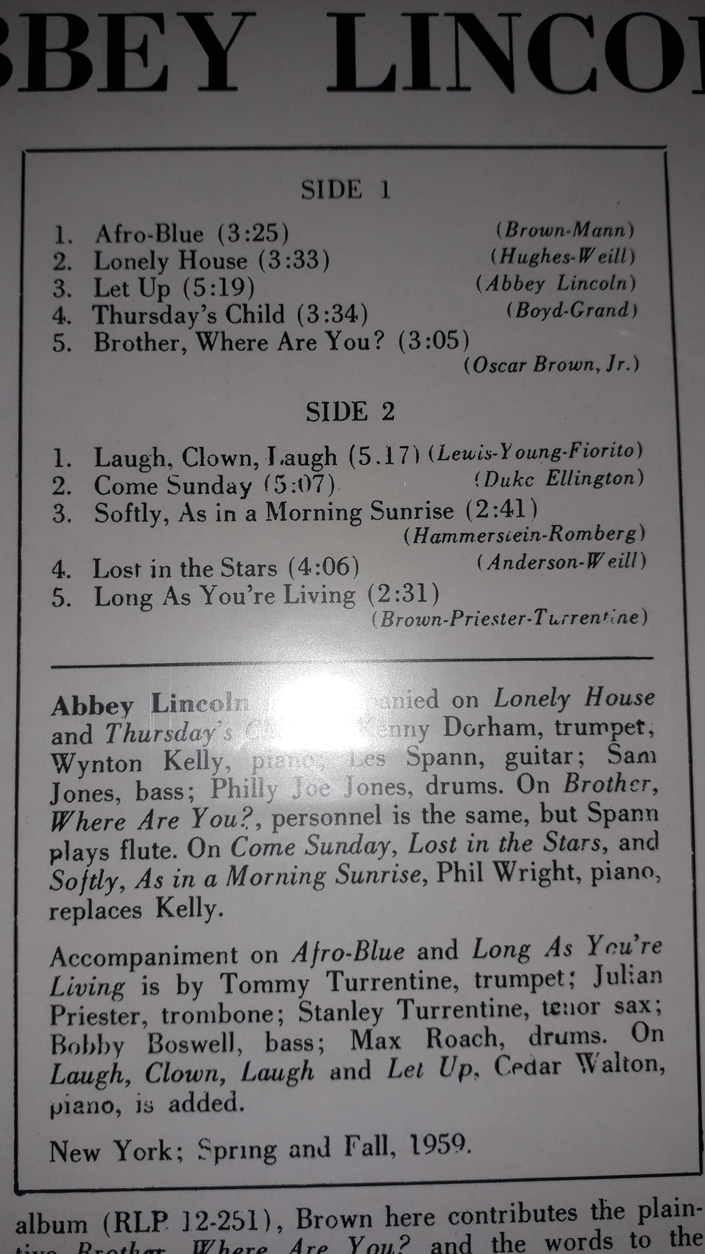 interesting album with Abbey Lincoln, Coleman Hawkins, Olatunji, Booker Little, etc.