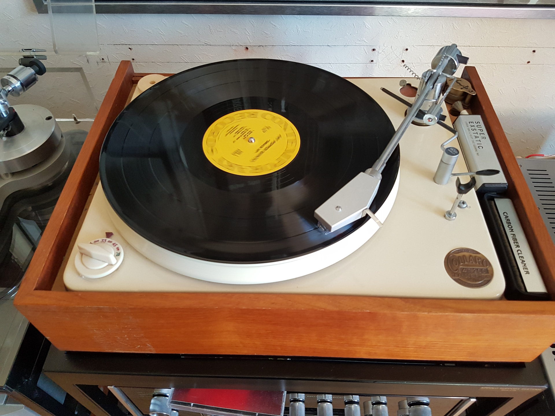It had an Akito arm, Goldring 1042 cartridge, valhalla power supply and pre-Cirkus bearing. The first things to be done were a Lingo 1 fitted and the Akito rebuilt by Audio Origami, who upgraded it. I got the Lingo 1 fitted as I wanted to play 45s with ease. I used a Graham Slee MM phonostage to start. This was now a lovely, serviced turntable. My dealer recommended a Cirkus bearing and Kore.
