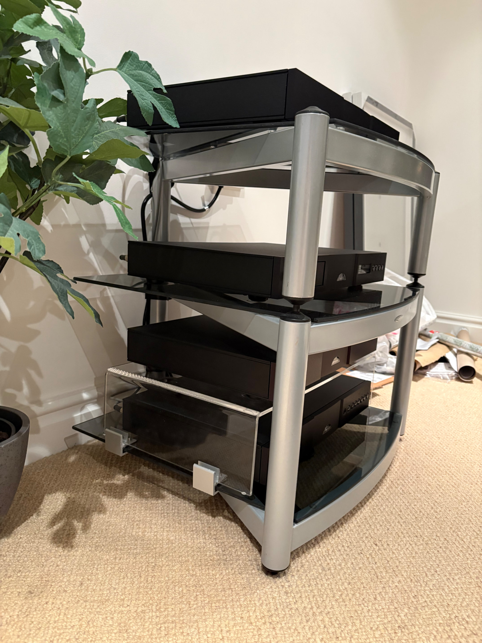 PS. I would also try replacing the quite thin glass shelves on your rack with plywood or bamboo ones cut to size. Or else apply some sort of damping strips to the glass. Such simple metal/glass racks can all too easily sound forward thin and shouty IME. But again, just what I would do and if you’re happy already then just leave well alone.