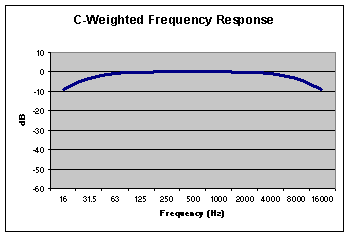 C Weighting The response of the human ear varies with the sound level. At higher levels, 100 dB and above, the ear’s response is flatter, as shown in the C-Weighted Response to the right. Although the A-Weighted response is used for most applications, C-Weighting is also available on many sound level meters. C Weighting is usually used for Peak measurements and also in some entertainment noise measurement, where the transmission of bass noise can be a problem.