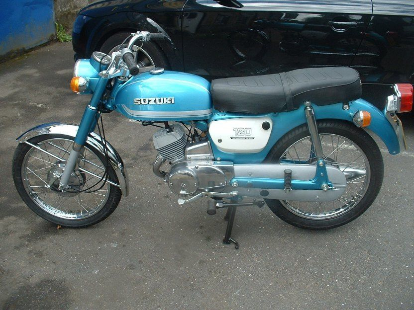 My first bike: Suzuki B120 (not the actual one). Think it cost about £220. Bought it and rode it off -no instruction or anything. Scary looking back!
