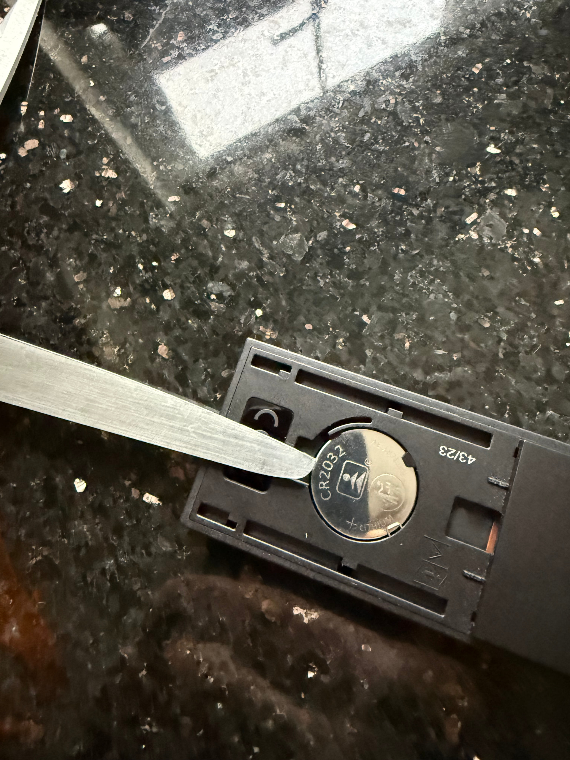 Others have said how to get it out, a small micro flat screwdriver may prove easier than scissors. Make sure you fit a decent cr2032 battery, I’ve found Panasonic good for other applications.