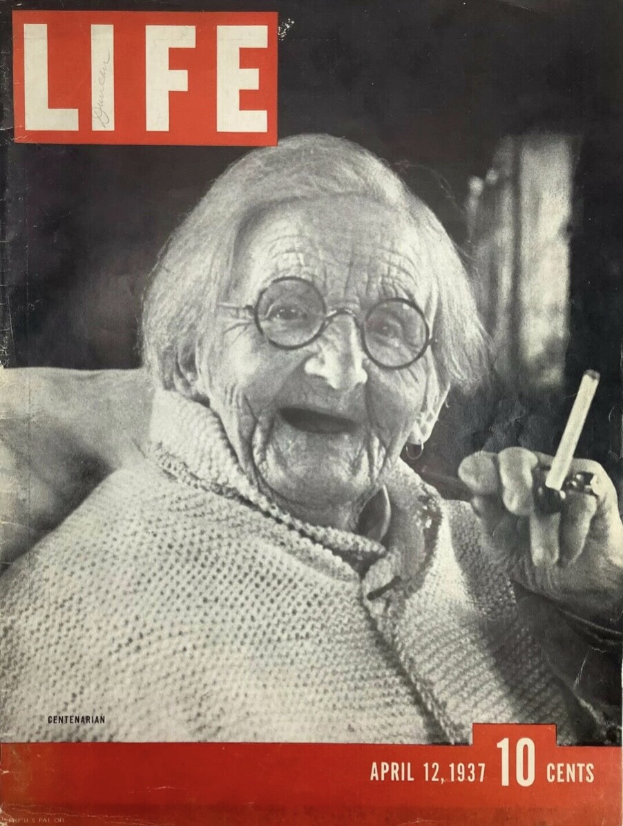 This is my great great grandmother - 1837 - 1939. Celebrated smoker! I still have the little pipe she’s holding with the cigarette ‘a la chimney’.