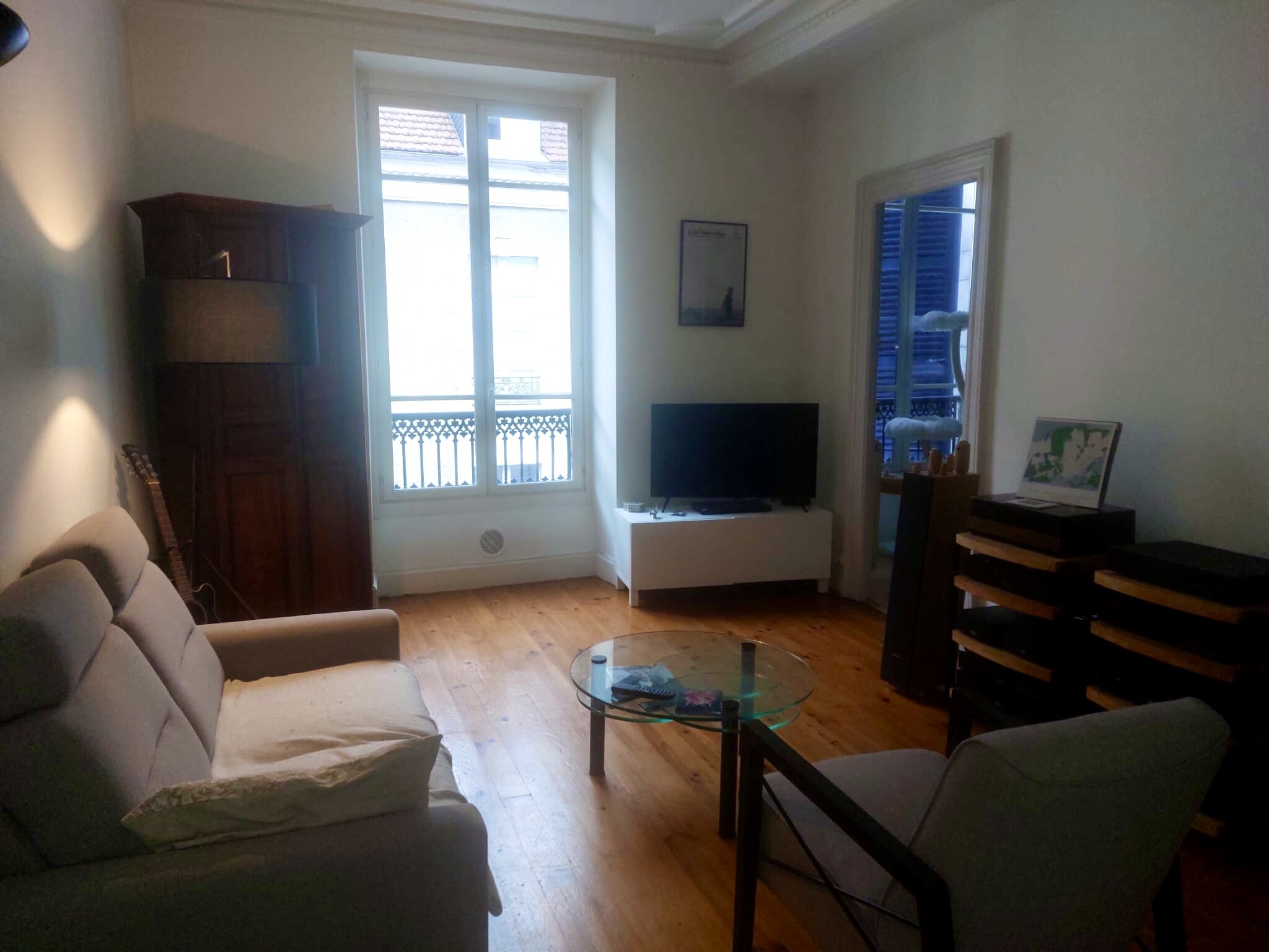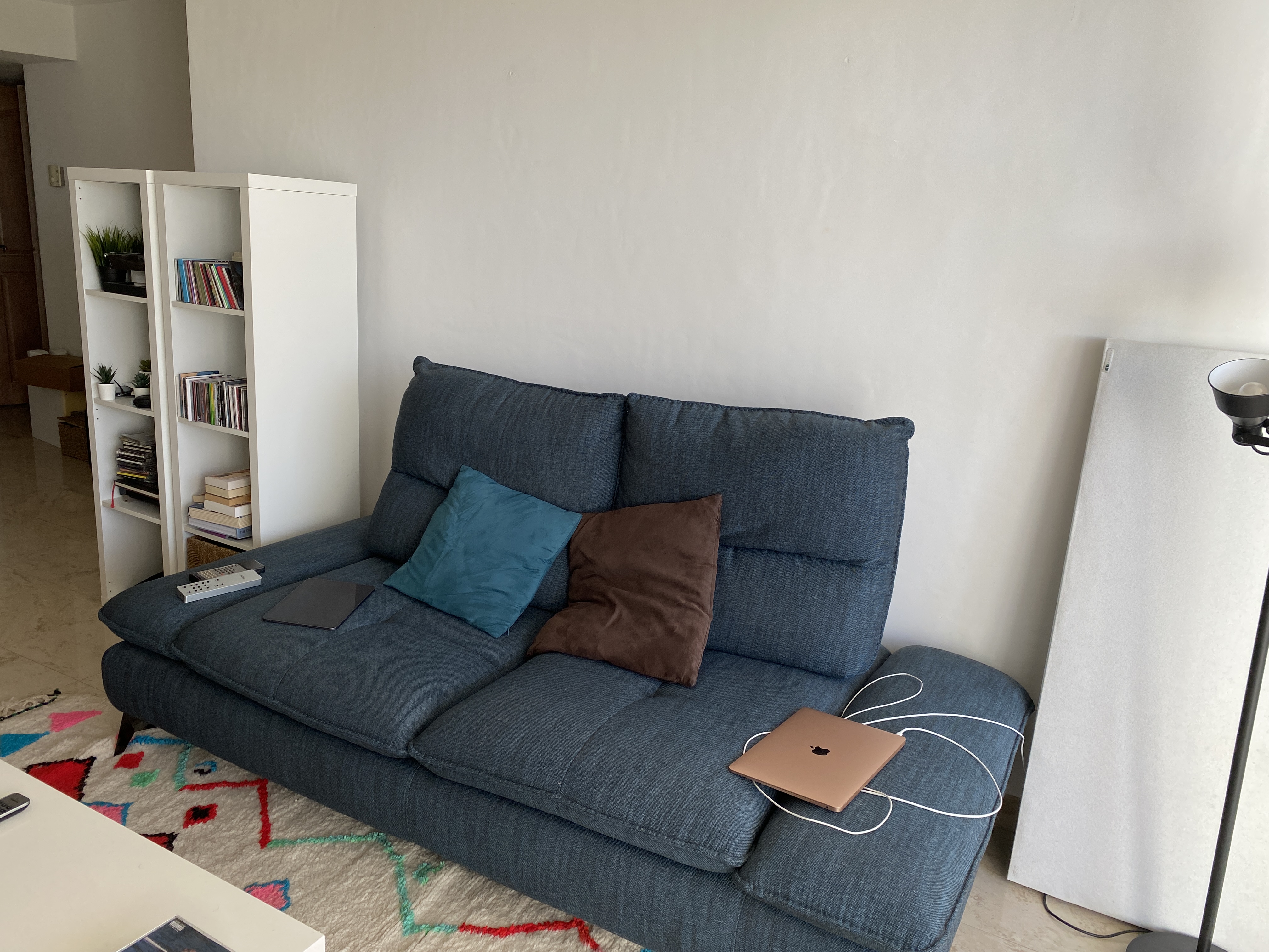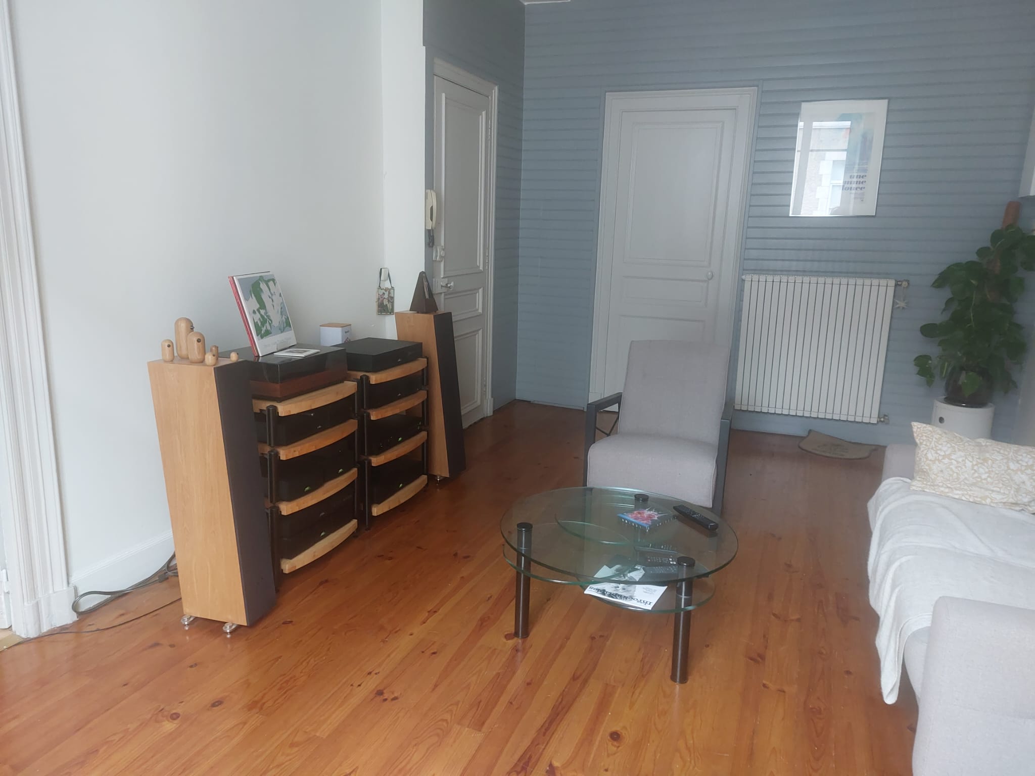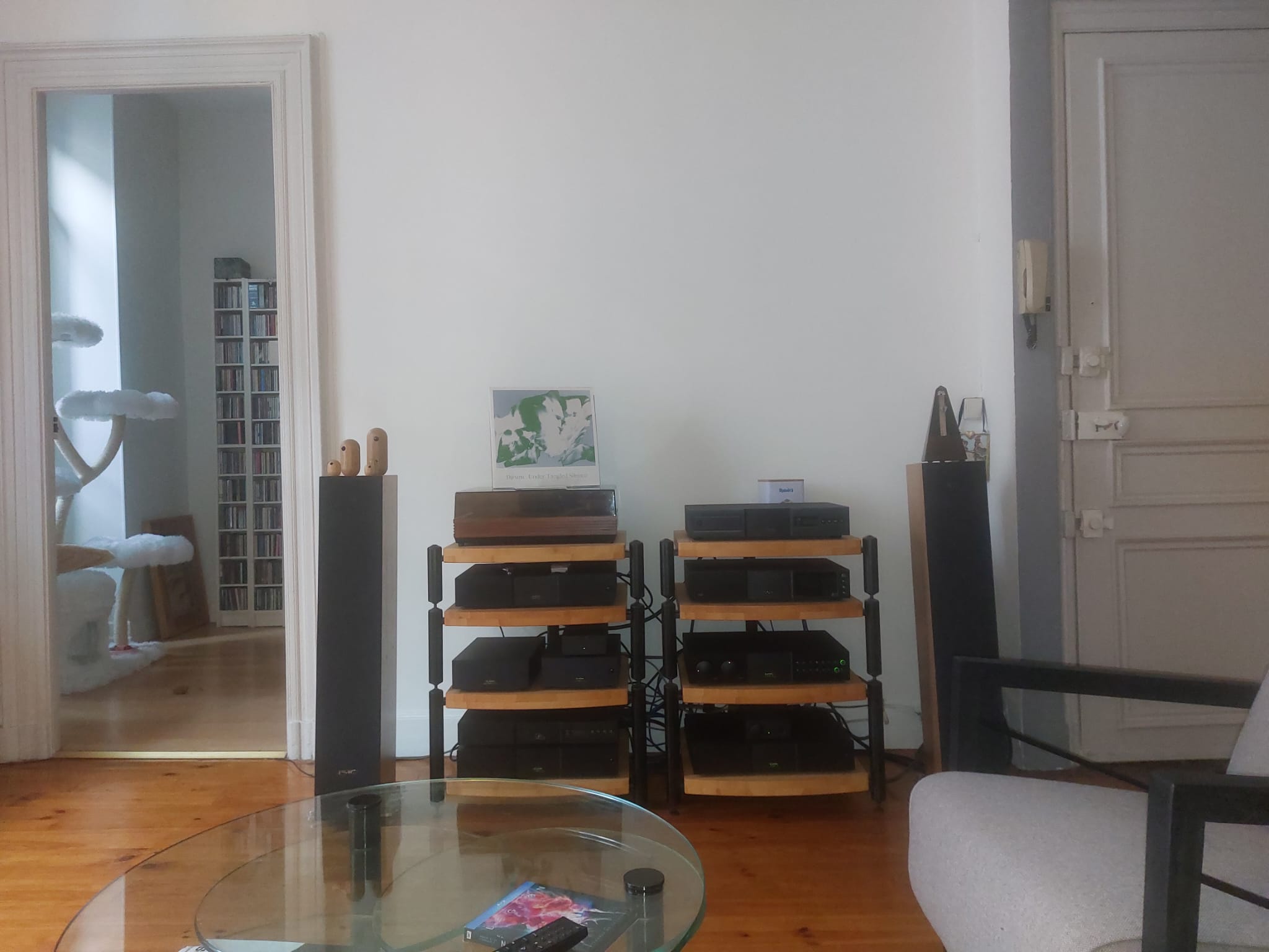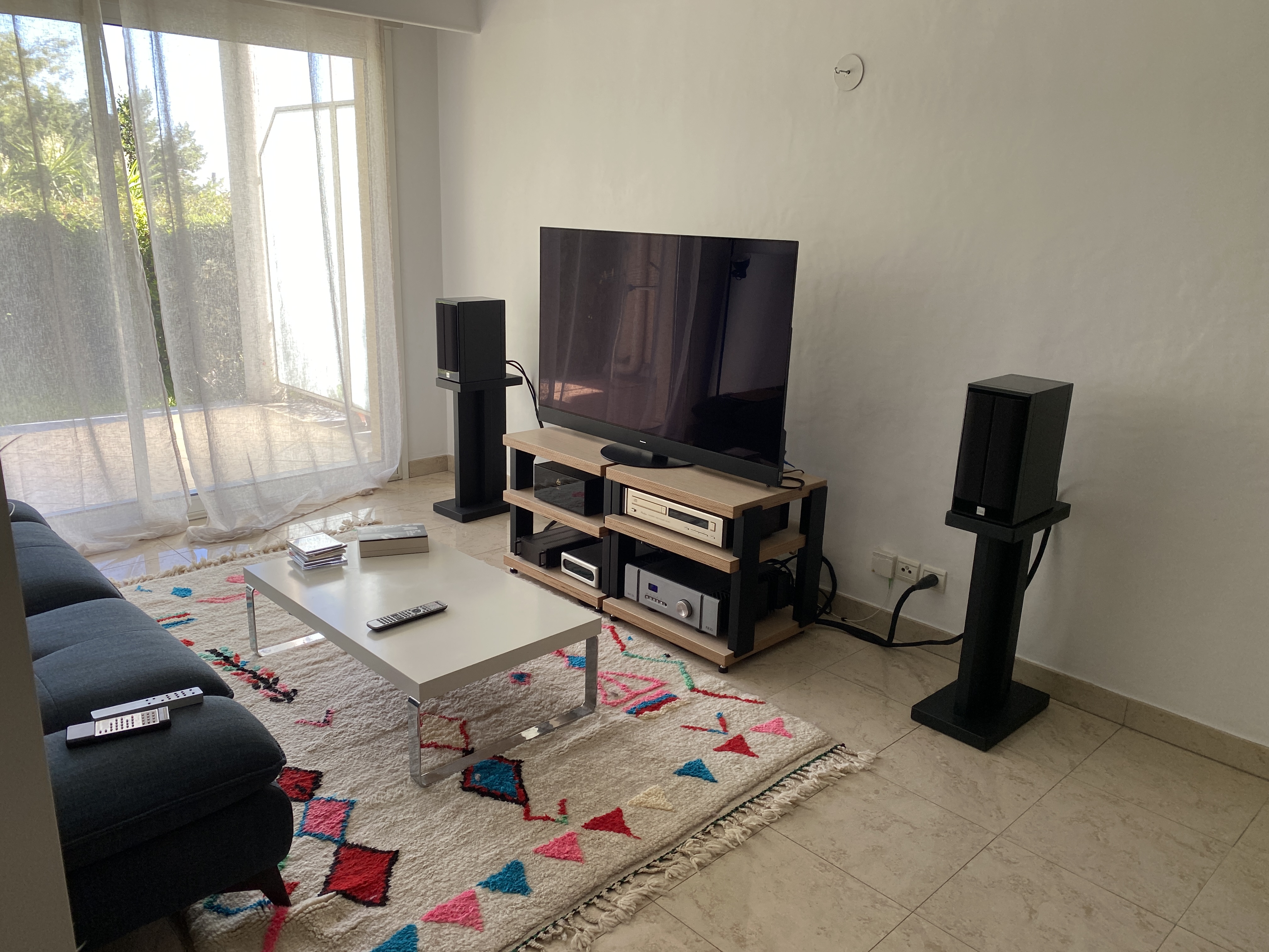 I placed a panel to the left of the couch since it seemed logical with the speaker being right across from it. But I can’t really say if it’s better or worse, because my ears aren’t in great shape at the moment, so I’m limiting my listening unfortunately.
