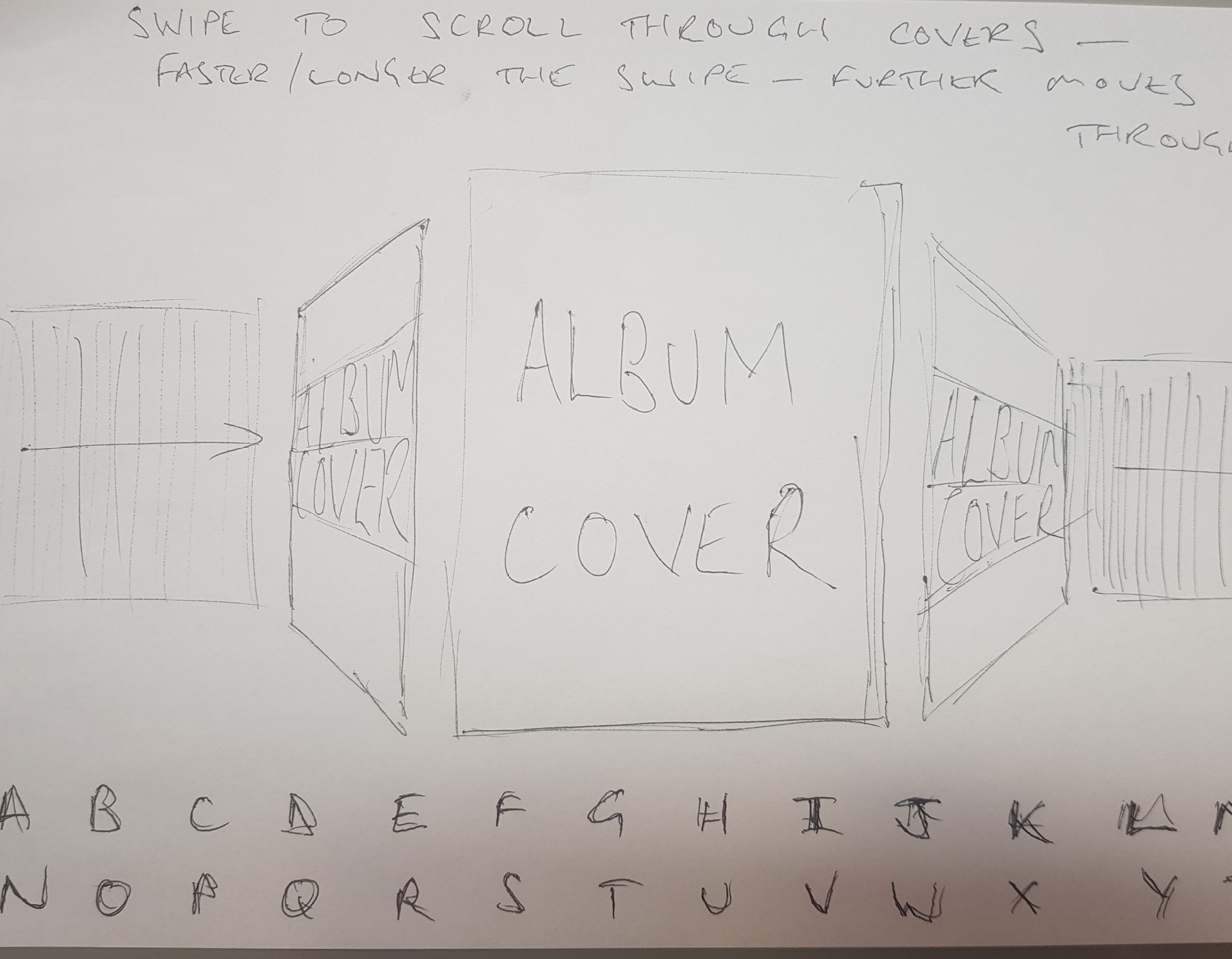 You can select the letter at the bottom to jump to that section of your collection (as you would do in real life), then scroll through your albums using a swipe (faster the swipe the more albums you bypass).