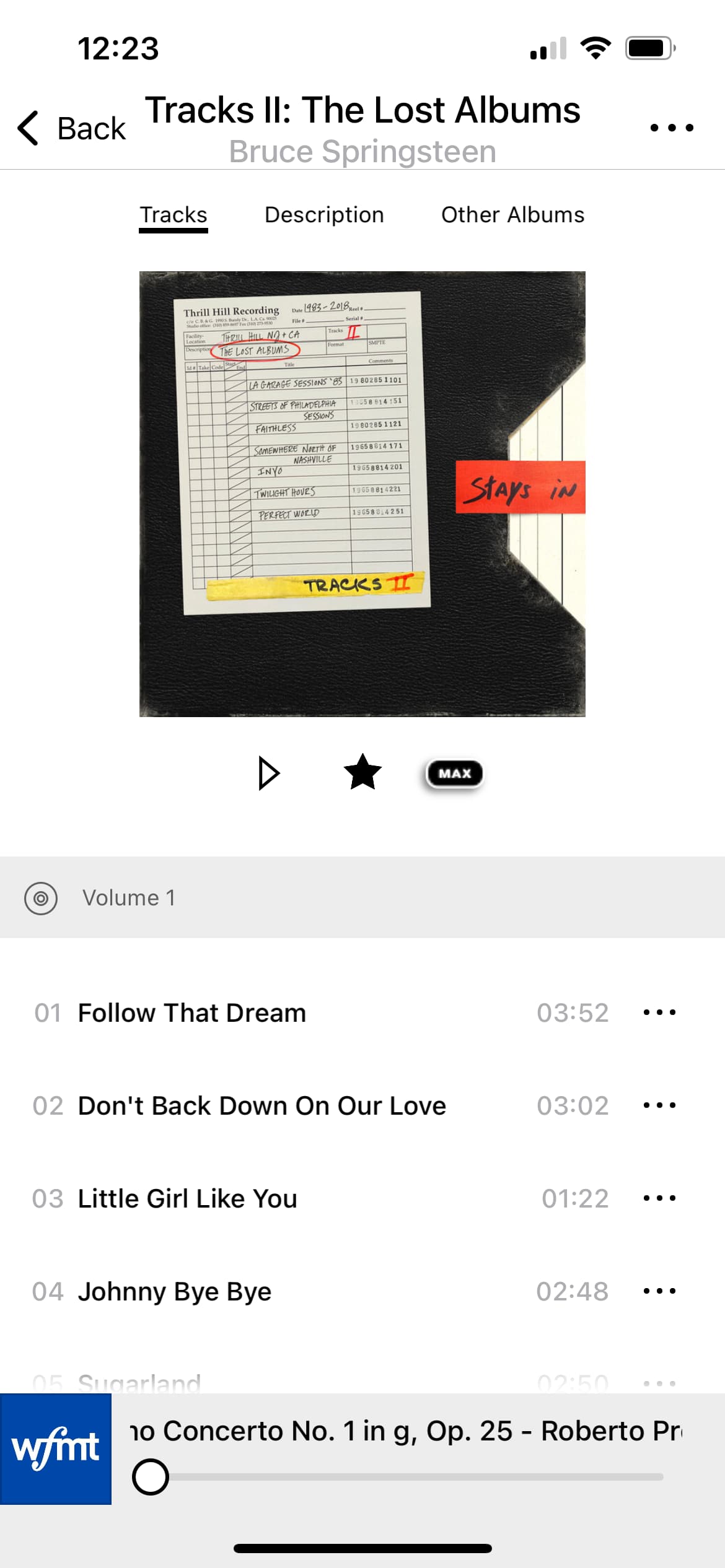 And once I tested it playing Springsteen, like all other times, had to click back several times to get back to the main page to put the radio back on. Kill the now playing, go back to the search bar, clear the search, click back, etc.