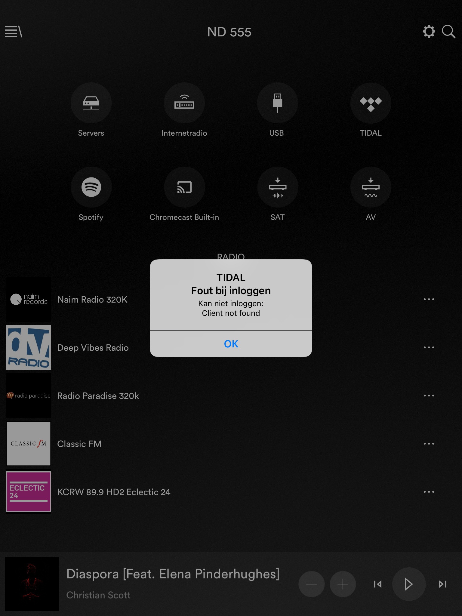Is anyone else experiencing problems streaming Tidal in the Naim App? I’m using IOS devices - an iPad and iPhone - and each time I open the Naim app I need to log back in to Tidal, and then it fails to play (Tidal Login Error - could not log-in: client not found). No problem playing radio stations through the app, but that’s it.