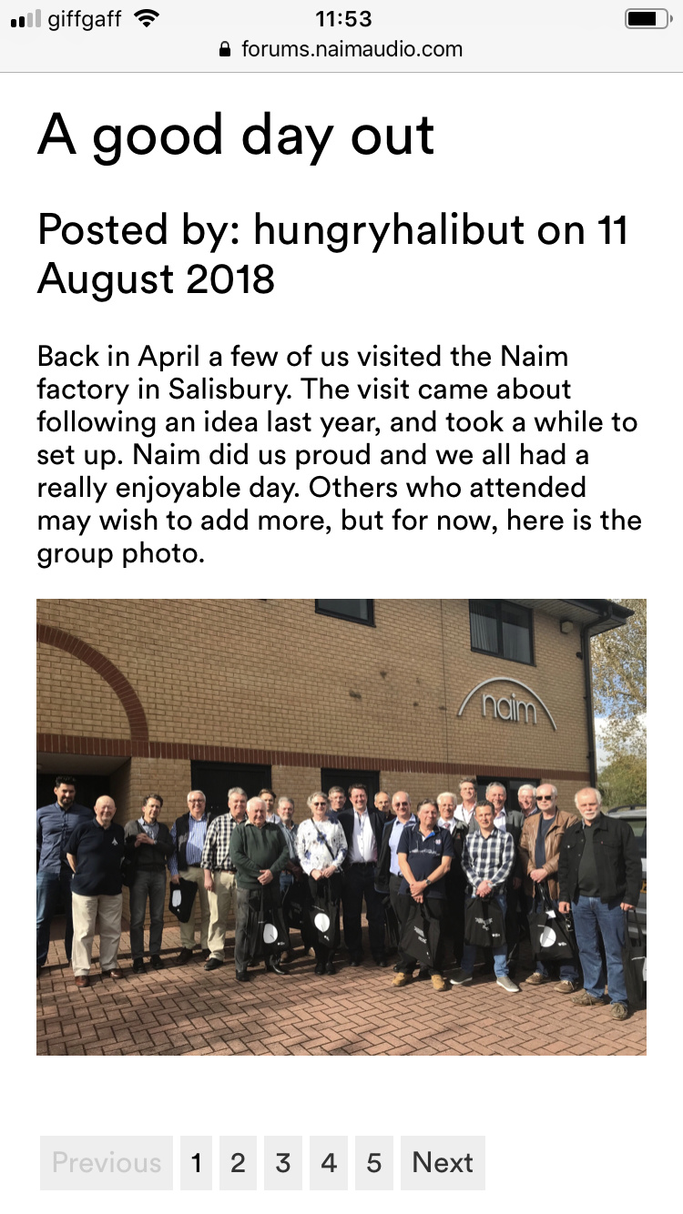 We visited Naim about 3 weeks back toward the end of our holiday in the UK. Mark Raggett was the perfect host and our day was thoroughly enjoyable. Being an engineer it was especially interesting for me. A trip worth waiting for.