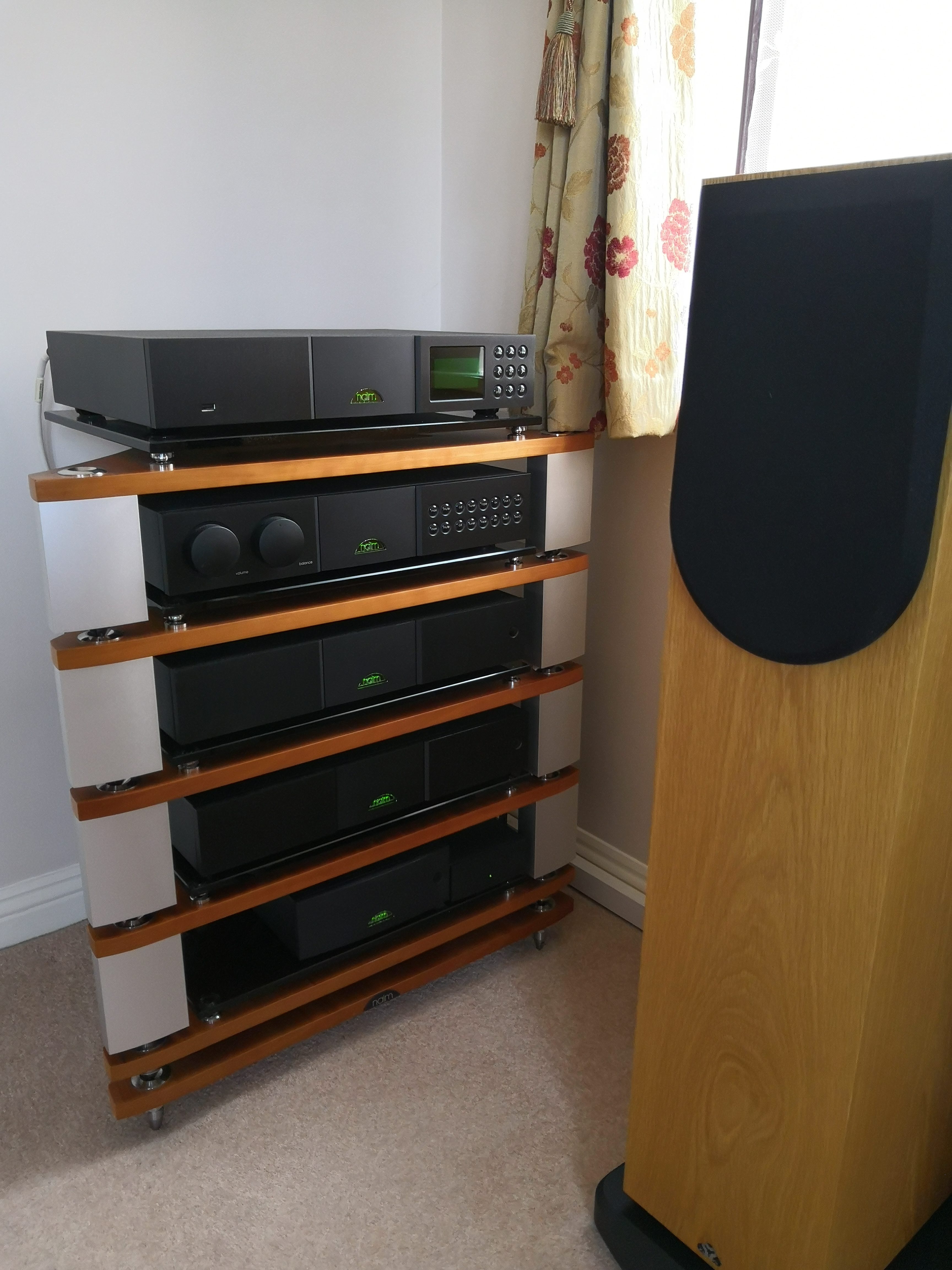 System - 272 / non-naim PSU / 300DR sitting on a Stands Unique AV rack (top shelf = 272 & 300DR; middle shelf = CHC555 & 300PS (bottom shelf houses Isotek conditioner, AV amp & Sky box).