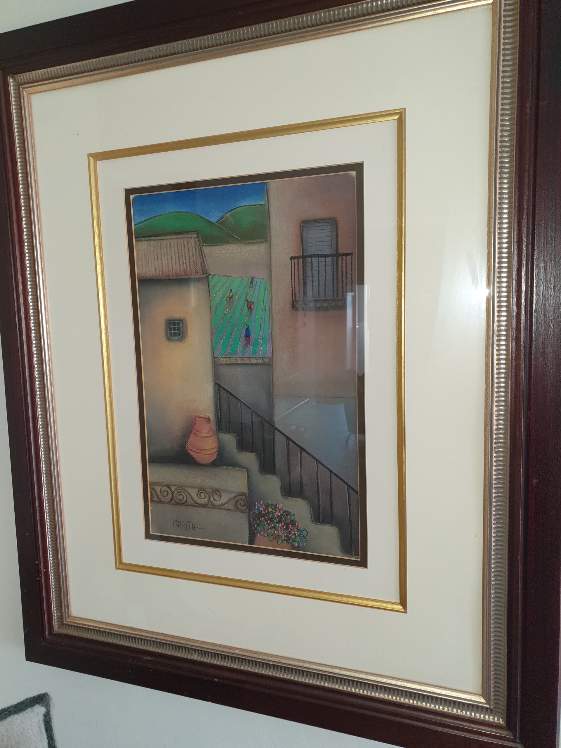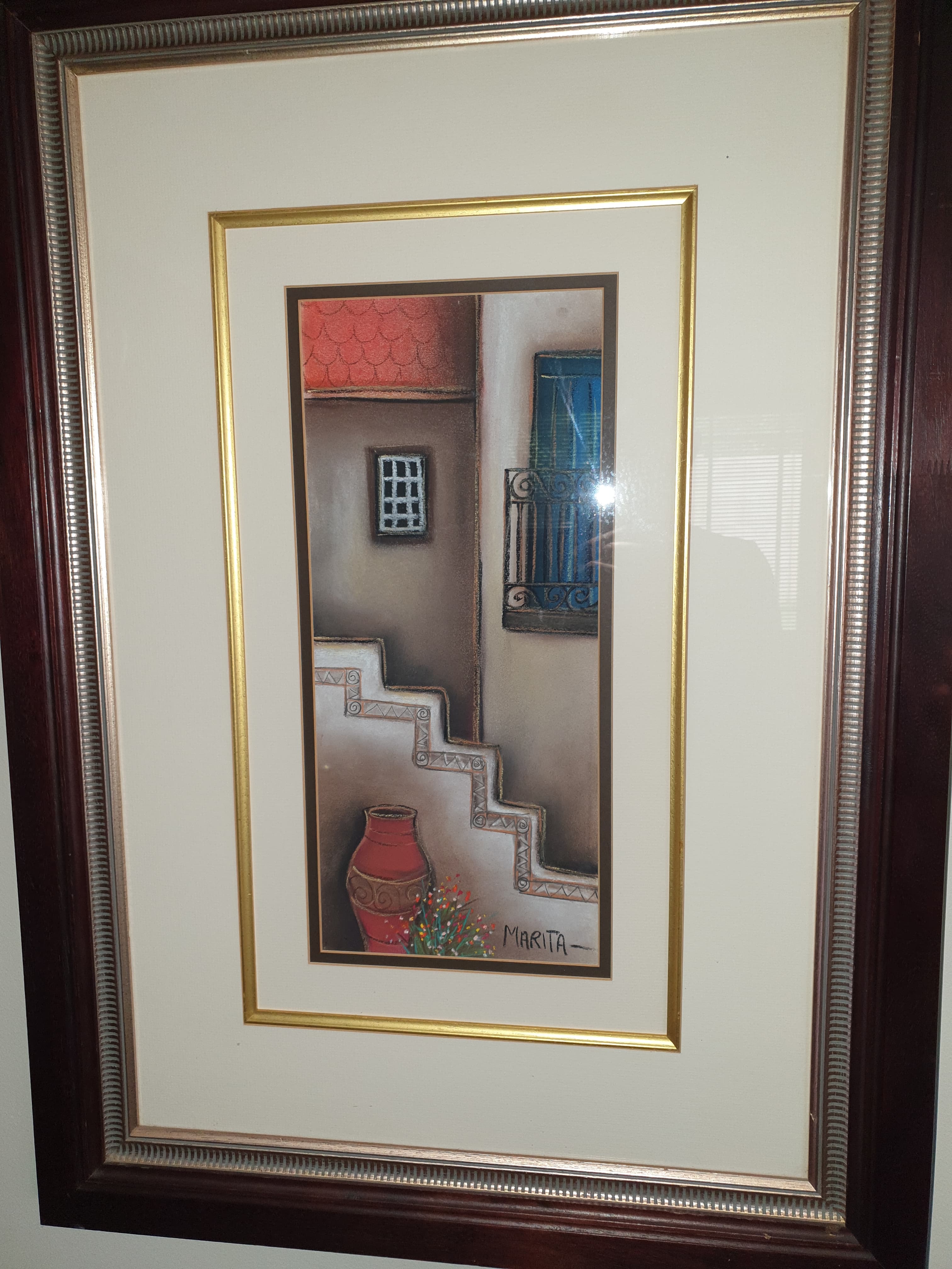 @anon29651526 you asked, I think, a while ago to see our Pippa Blake. It’s really small and having reflective glass is incredibly hard to photograph but it’s the best I can do. On the left is an oil by local artist Andrew Pearson. He’s self taught and we have quite a few of his paintings around the house. My favourite thing in the picture is the 1970s Poole pottery vase. It was in my dad’s house for much of my childhood and I got it when he died. I just love it.