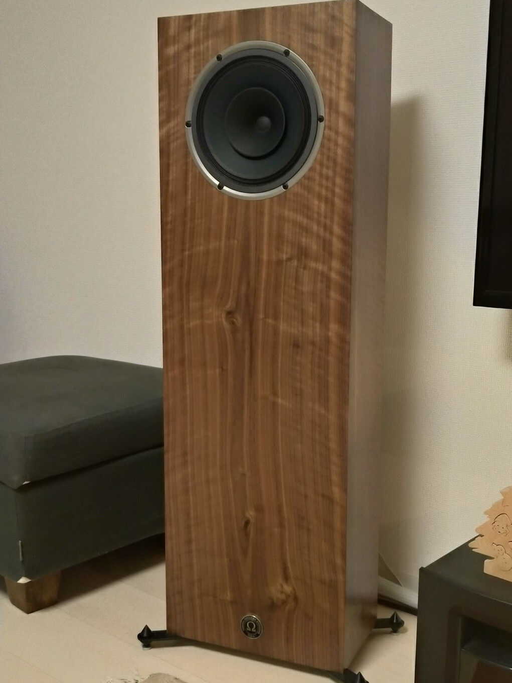 These are an unusual speaker sold direct from the tiny US factory mostly. The are about the same size as my PMC Twenty5.23 and similar dimensions to the 23s if turned sideways. They are clearly hand made rather than given the consistency of a larger production line. The veneers are superb though. They use a single full range 8 inch driver and a large rear port with a fabric diffuser. Although rear ported, it is a large and fluted port and allows them to be totally happy up to 6 inches to a rear wall. Unusually, they use no crossover of any kind. Nearly all single driver speakers still require some sort of crossover to limit the output extremes and prevent damage or make them listenable. The Omega drivers don’t. They have very tube friendly phase angles and at 97db sensitivity combine to make them a good choice for a puny 10w amp and a large room.