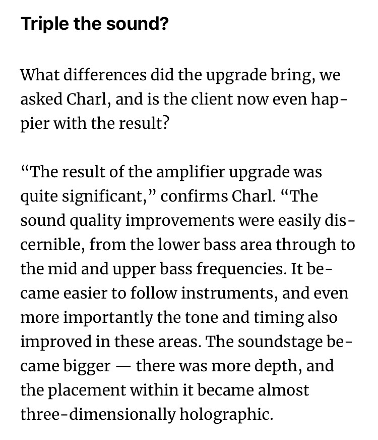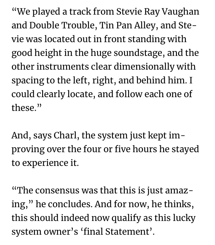 Several years back I heard Statement demo at dealer where North American Naim rep was present. During presentation rep was called out to take call and when he came back told dealer they just received order for 4-Statement systems for one person.