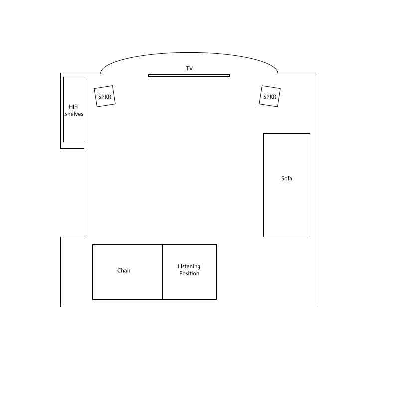 My room is around 12ft x 12ft square but has 2 alcoves either side of a fireplace that are around 1ft deep. The speakers are positioned at the edge of a bay window and the tweeter is 0.5m away from the wall with plenty more space into the bay behind it. The outside of the speakers are 0.75m away from the walls. Hifi runs off a different main to TV. I’ve tried to upload a bad diagram.