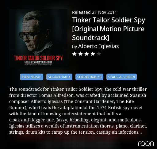 I have to say that the music to the TV series of Tinker Tailor Soldier Spy is one of my all time favourites, the Nunc Dimmitis with the superb boy soprano , wonderful.