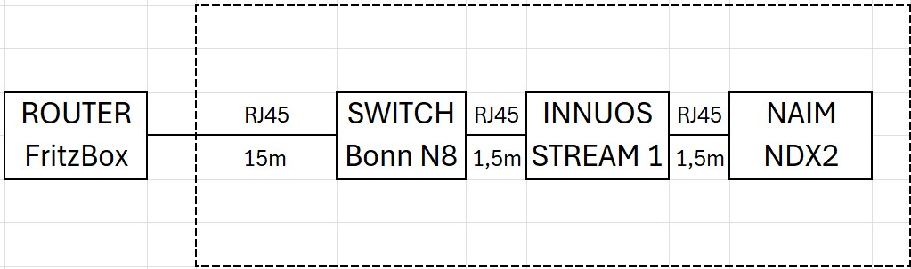 Here below my current Network Architecture. Innuos Stream 1 + LPS1 has two ethernet ports, I use them for IN/OUT and reach the NDX2. What may I improve?