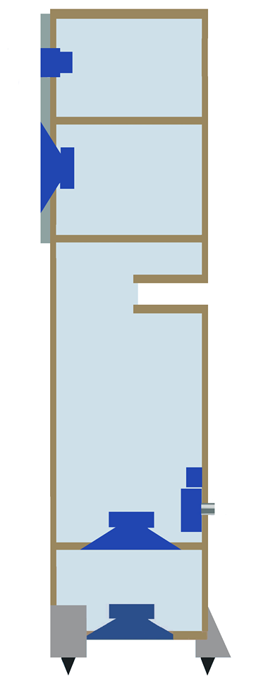 The lower, ported, part of the Ekstra houses not one, but two of the 134mm bass drive units. One unit is located on the bottom panel, facing the floor, while the second is located internally, directly above the first, in a sealed iso-baric arrangement, handling only low frequencies and acting as an integral subwoofer system. The low-Q port is specially tuned to enable close to wall placement of the speaker in most rooms.