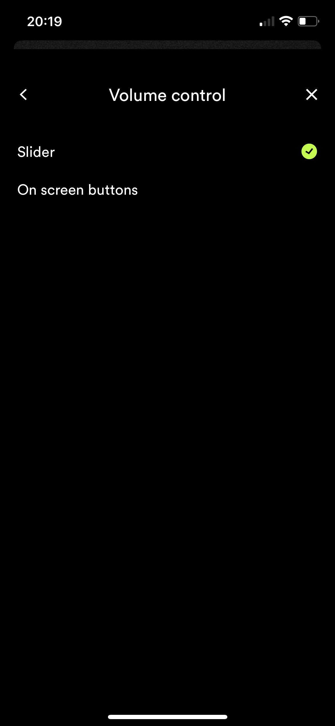As I explained in my last post I was using the slider control app setting but it still disappeared. I’ve been using the setting for months but it disappeared when I tapped on “reset app’. So currently the ‘bottom bar volume control’ is still ticked under the Other Settings but the slider disappeared. My streamer doesn’t respond to the + and - buttons presumably as my speakers are controlled by Abus switches but it does respond to the slider control on the Settings before they disappeared. I wonder if this disappearance is also indicative of my app going haywire after the recent update.