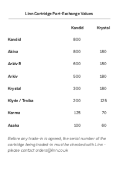 I never knew that Linn offered trade-in value on certain older Linn cartridges until I found an online price list the other day - I have an original Arkiv somewhere, though am currently using an OC-9.