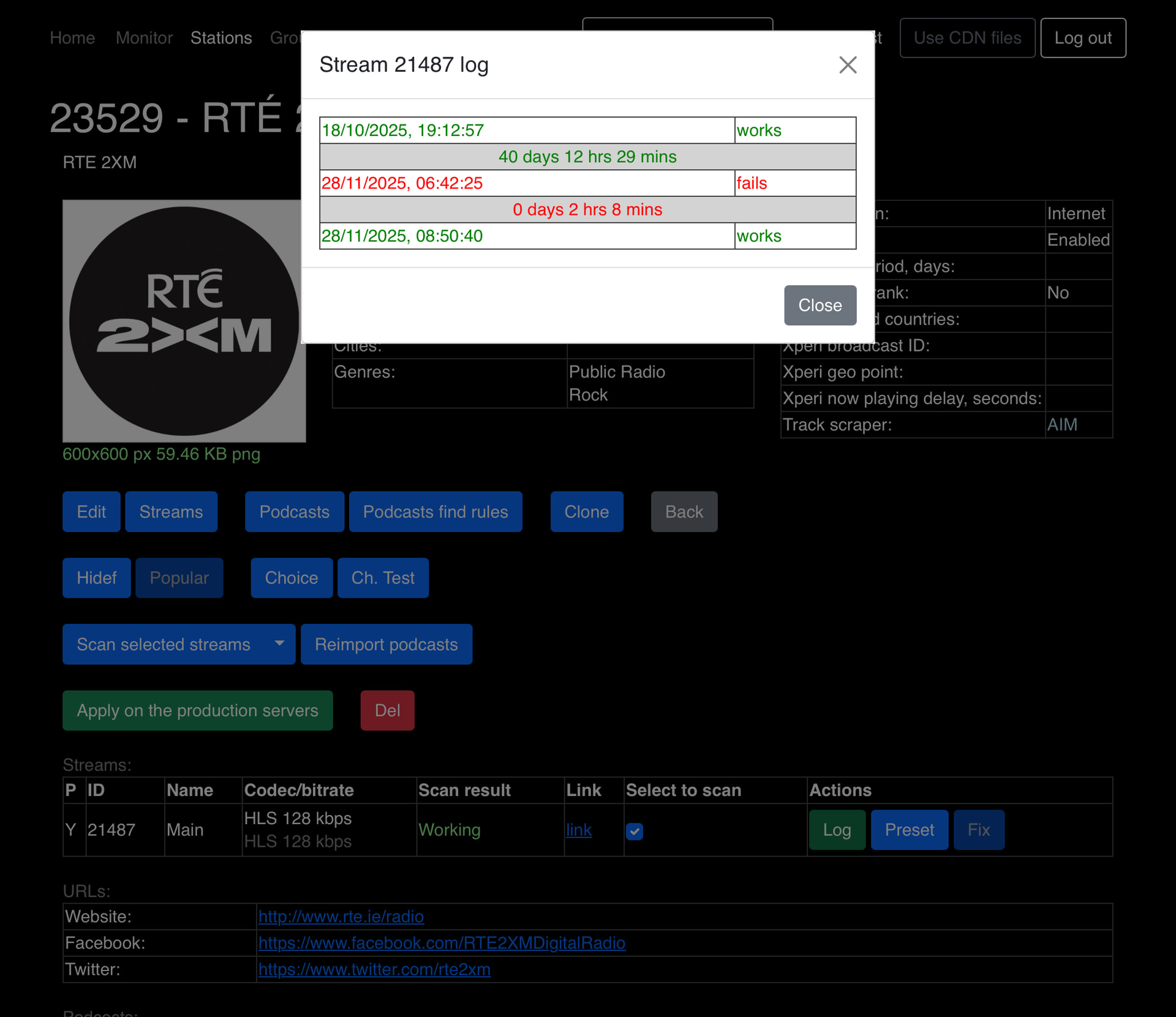 Try playing this URL from your computer and see if it’s stable. It’s the same URL that our radio directory feeds to the streamer: