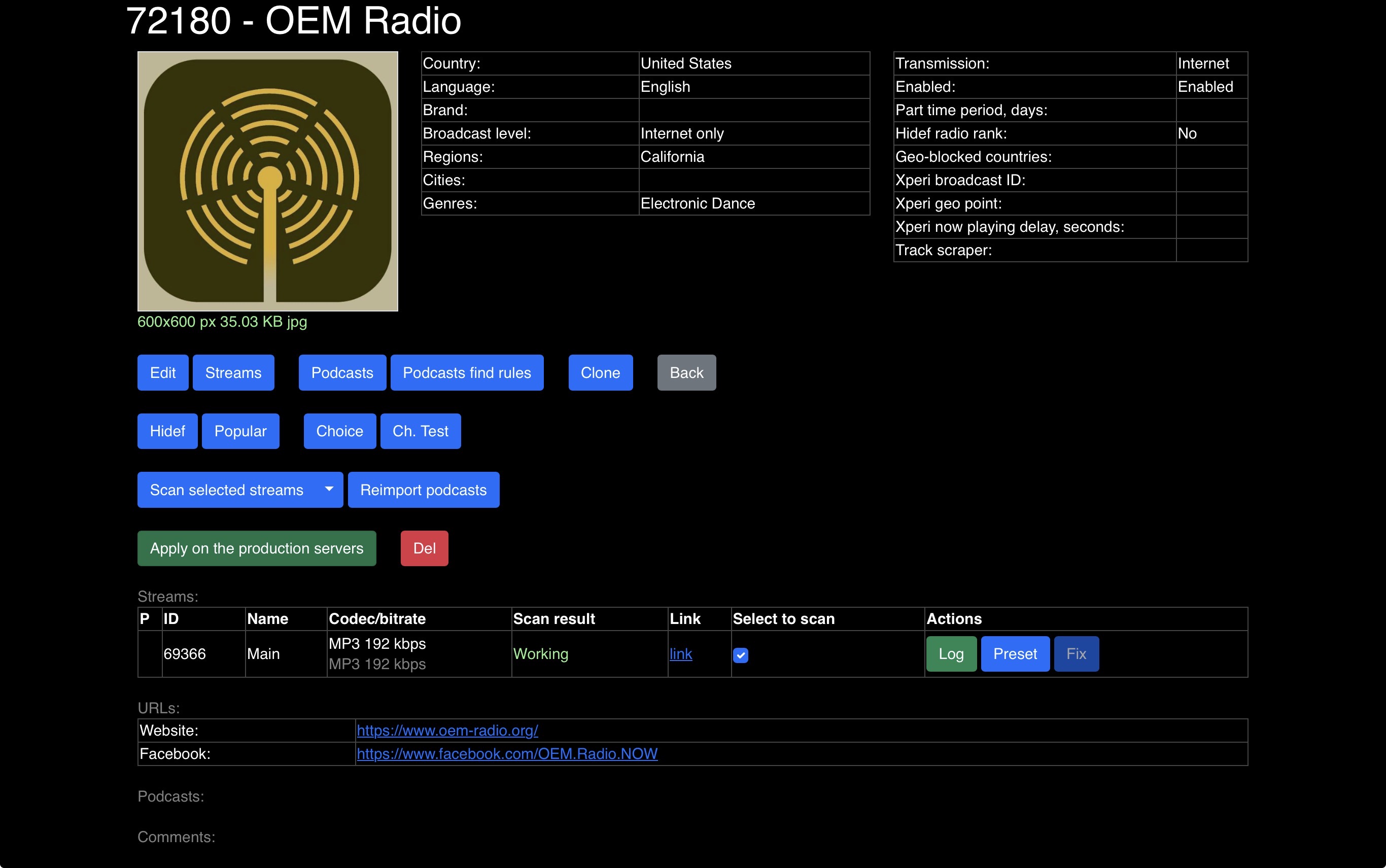 - Advanced metadata feeds for artist, track and album info on many stations