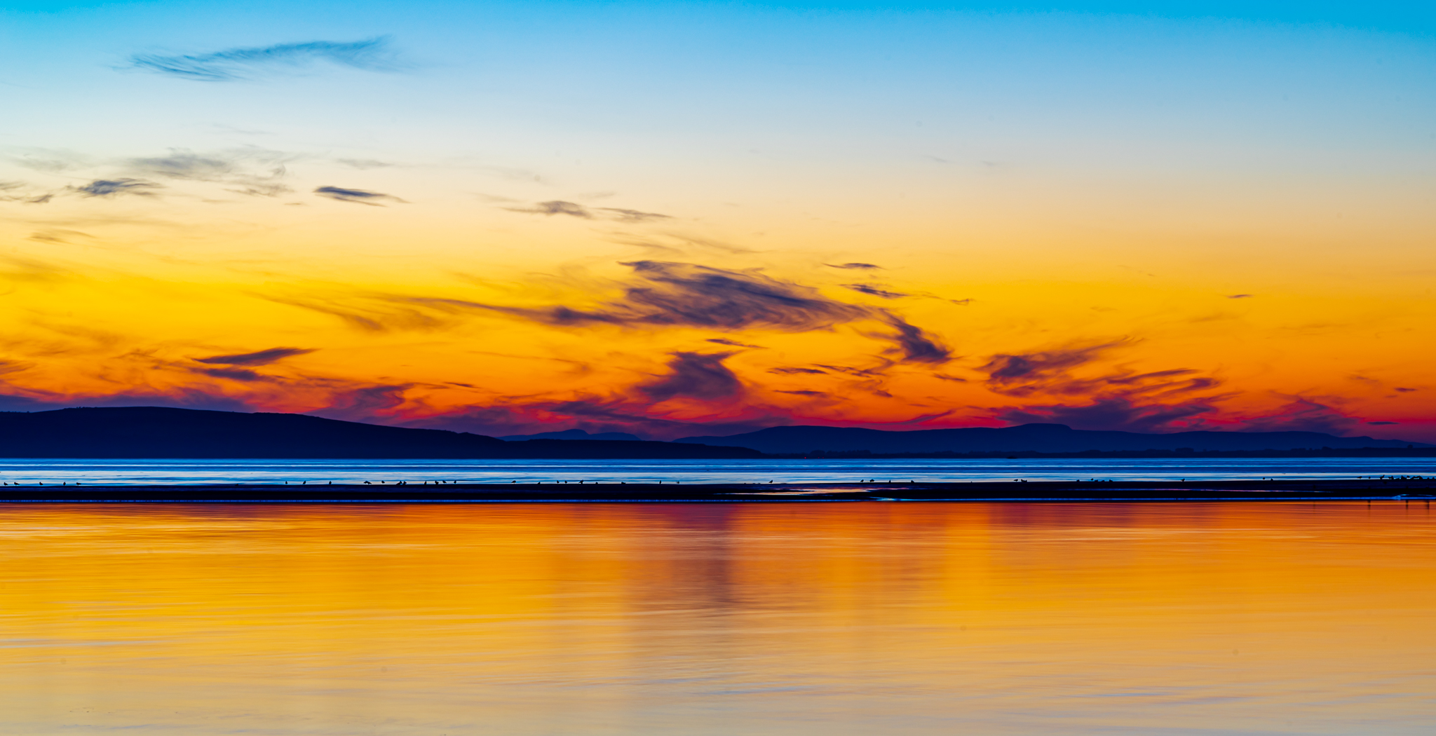 Last night’s sunset was the classic fireball dropping below the horizon and definitely spectacular. However, I found myself looking for some of the more subtle sights, so I stuck around until 2245 to catch the afterglow, hoping it would reflect on the calm sea; luckily, it didn’t let me down. For the second shot, I tried a short left to right camera pan with the shutter open; probably as arty as I’ll ever get but I quite like the effect!