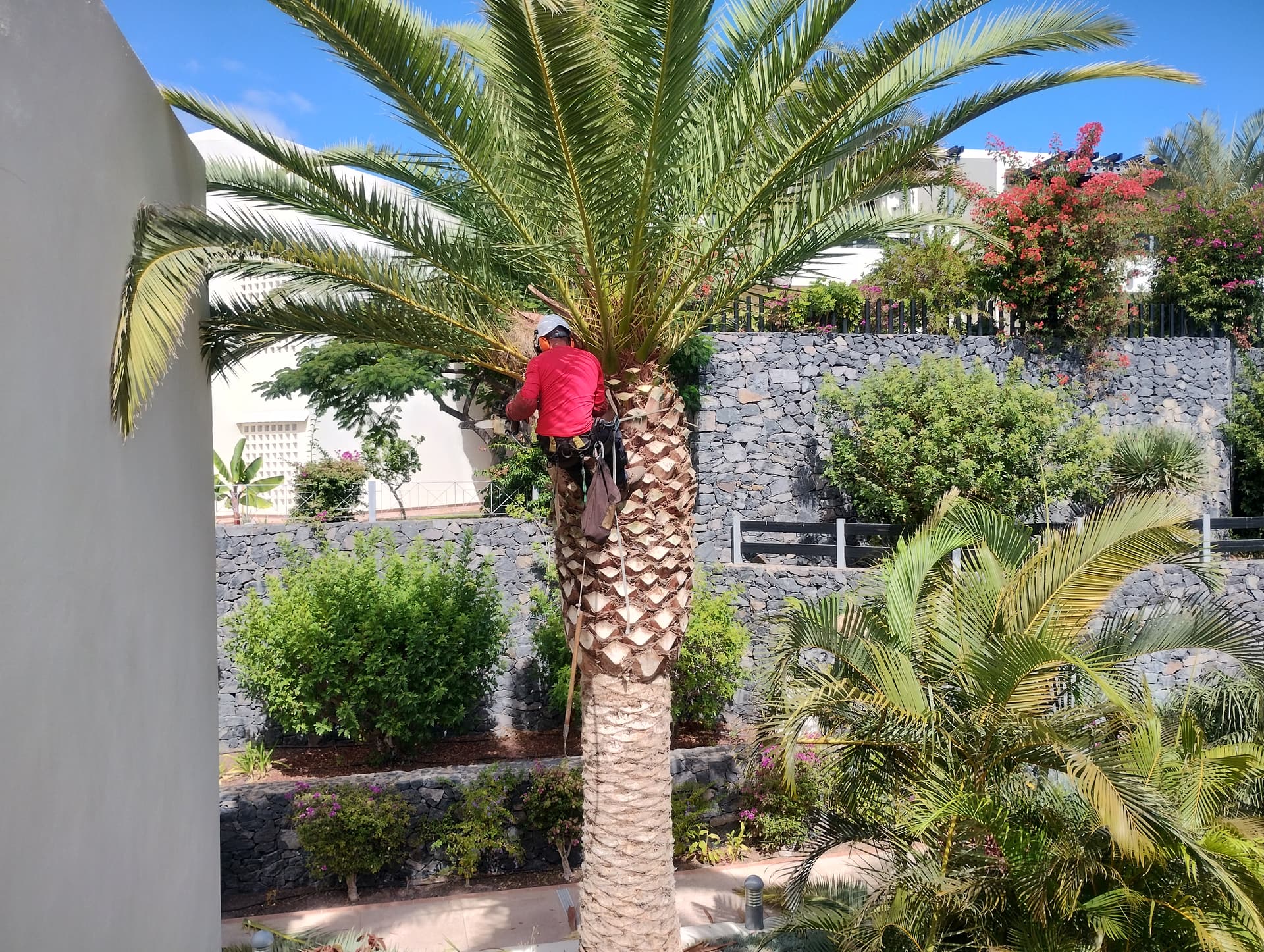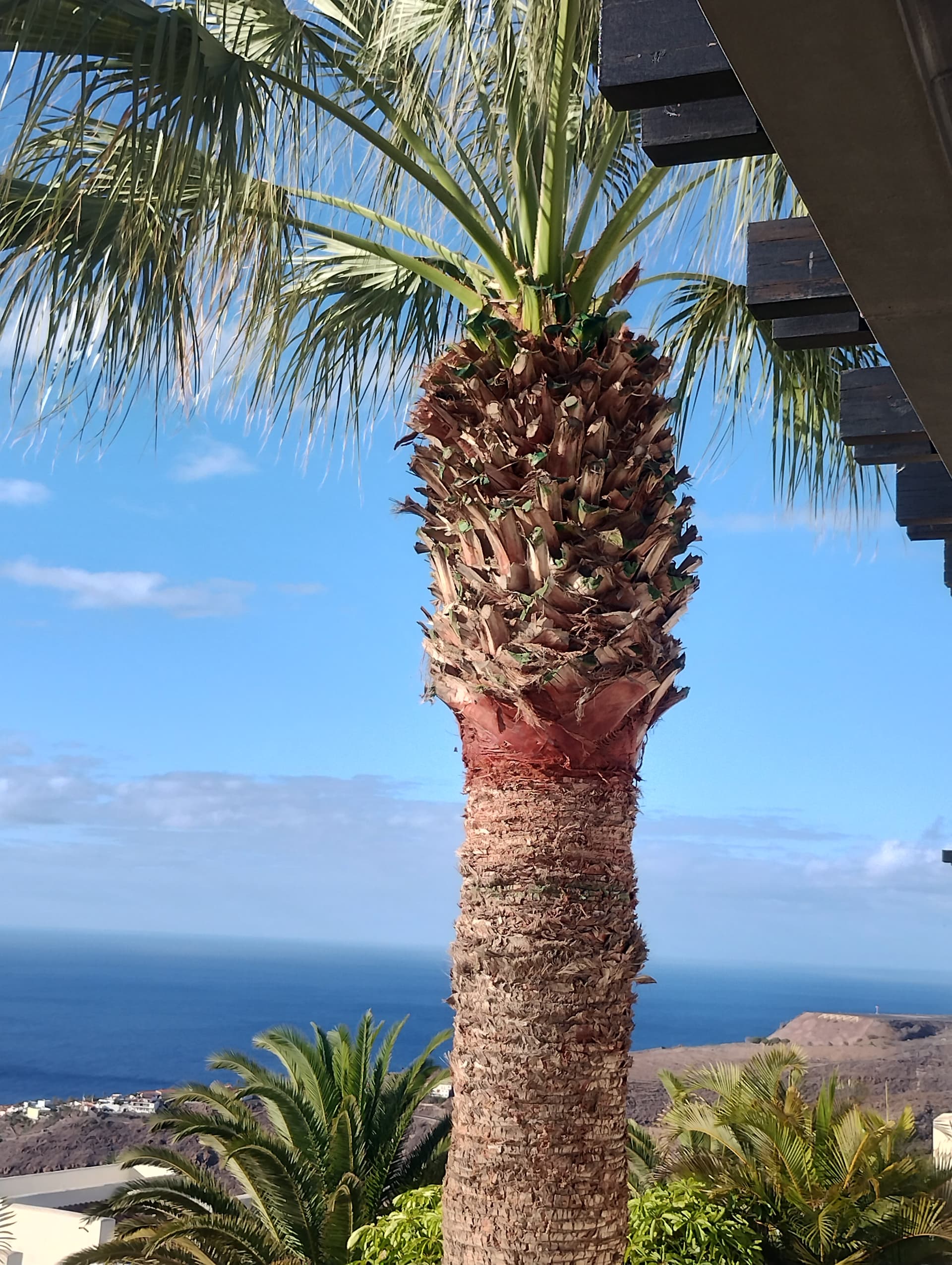 Yesterday the palm trees by our apartment were getting their six monthly hair cut. I took a photo of the one to the rear being done.