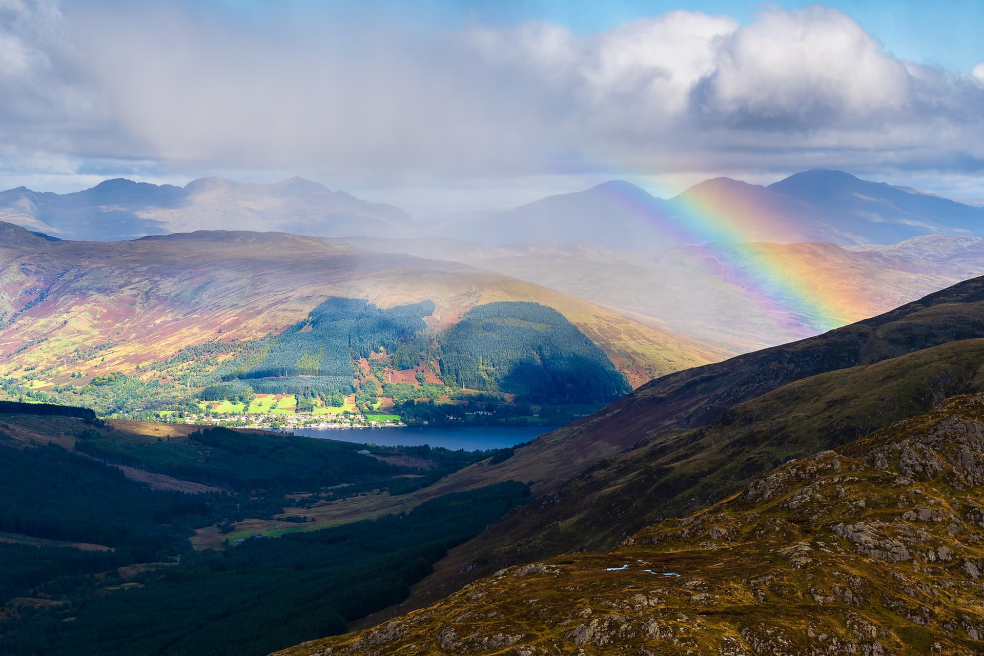 Rainbow over Loch Earn, from the Corbett, Ben Each, Loch Lomond and The Trossachs National Park.