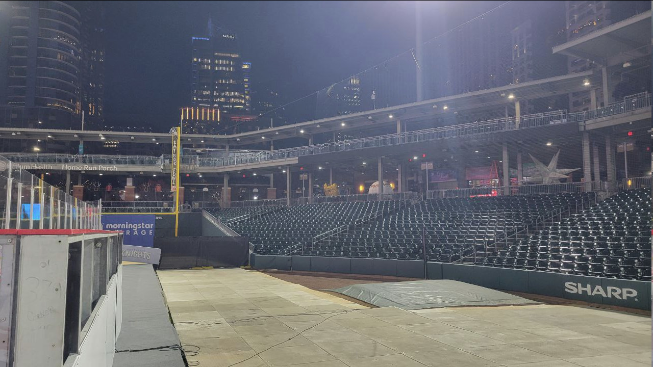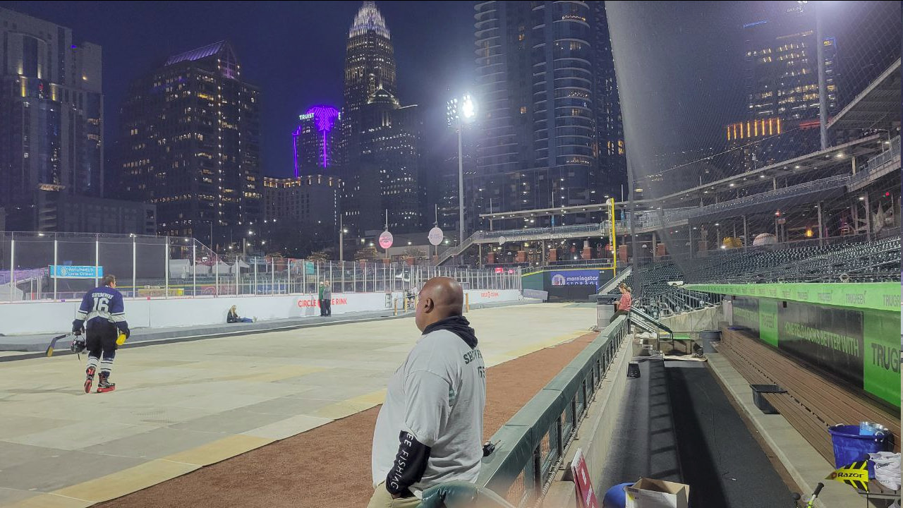Not sure how “nice”, but a cool experience especially for a 67 (almost 68) year old guy nearing the end of his plying days…they put a rink down on the baseball stadium here in downtown Charlotte and our team had an opportunity to play.