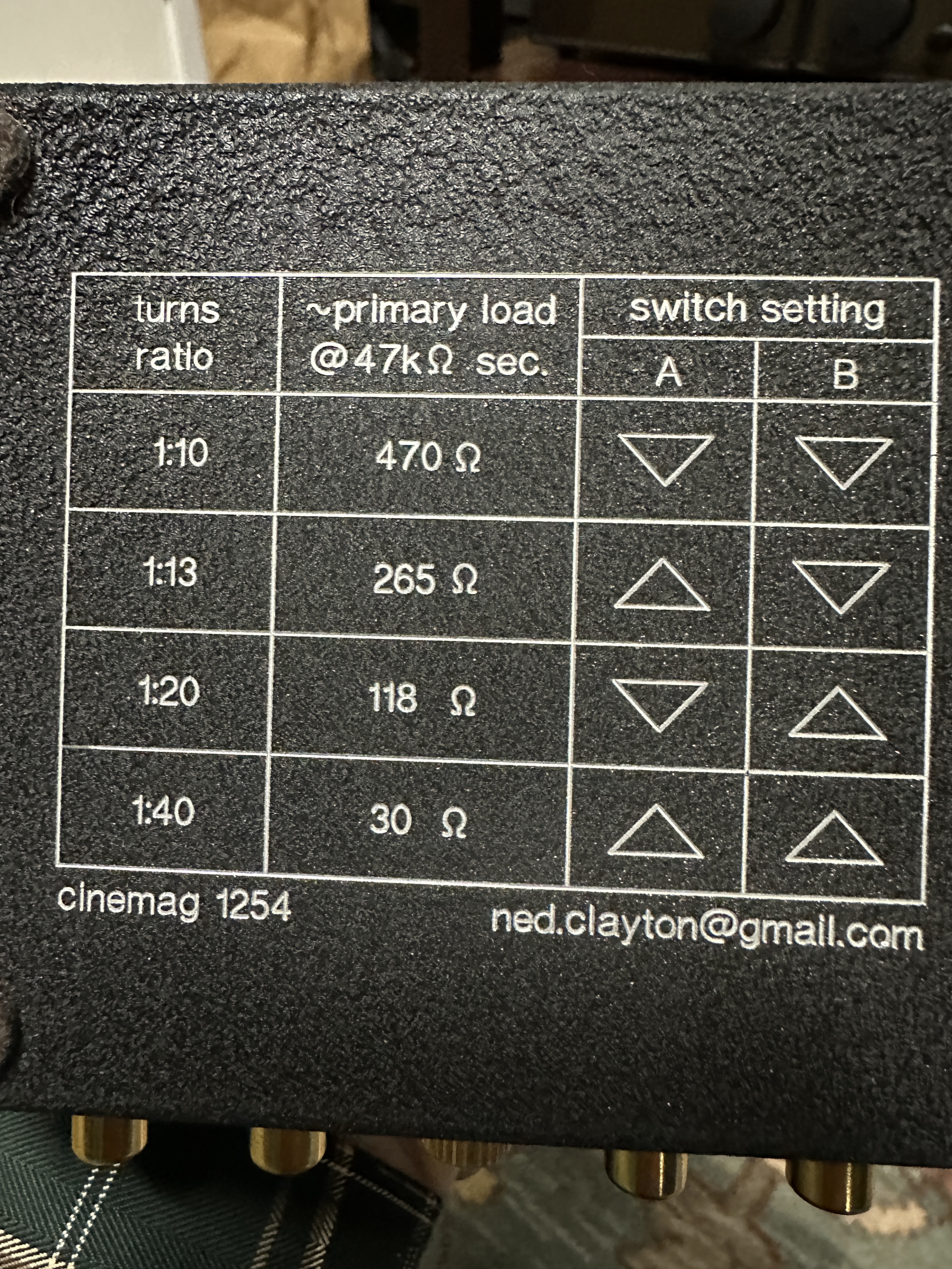 I experimented with the different ratio options and settled on 1:13 as best. When i asked chatgpt what ratio would be best with the internal resistance and output voltage of the AT33Mono it did the math and suggested 1:14 or 1:15…so my choice of 1:13 seems best!
