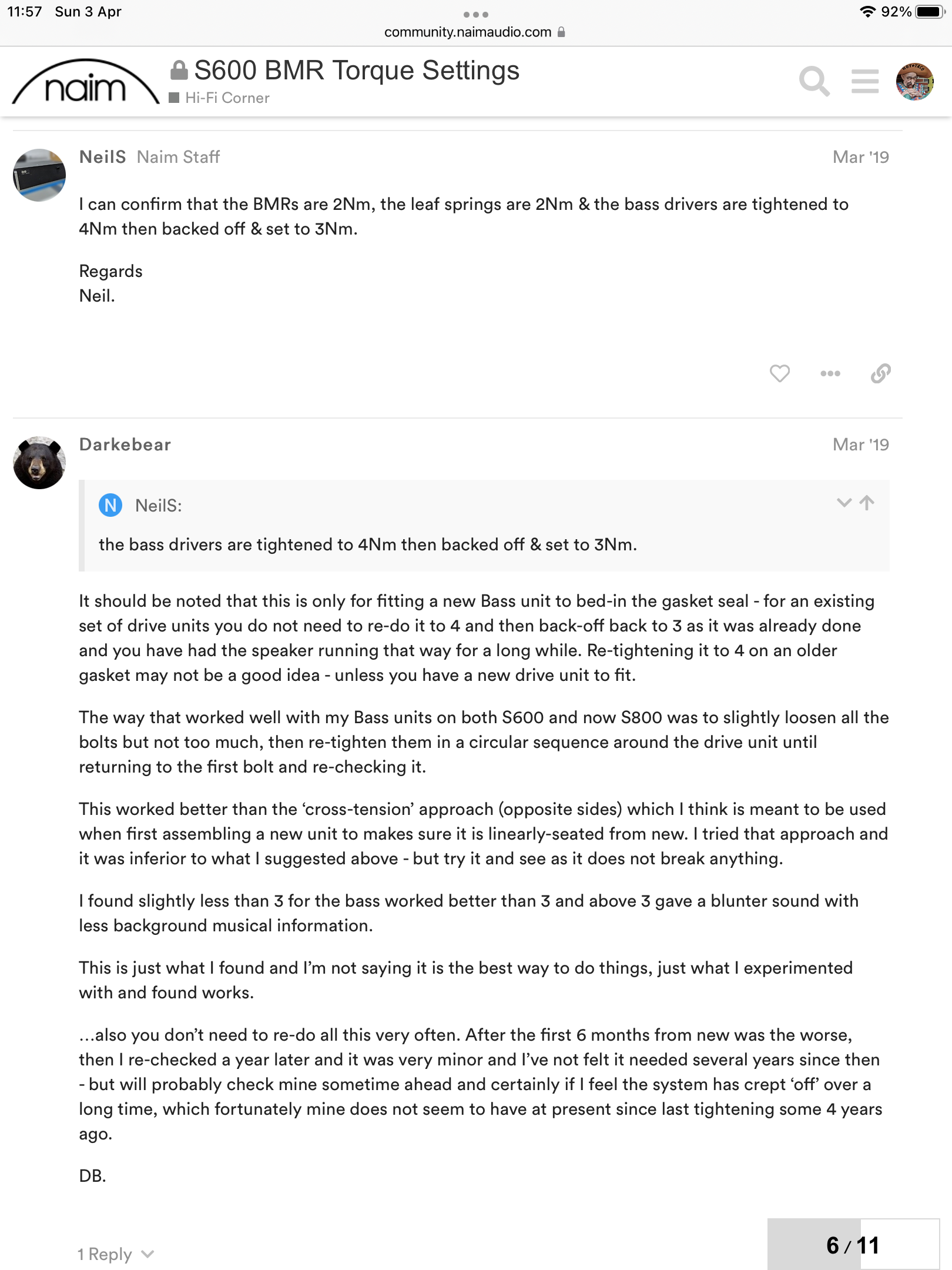 By components I meant the measurements (Nm) equal to the screws to be tightened. Thanks