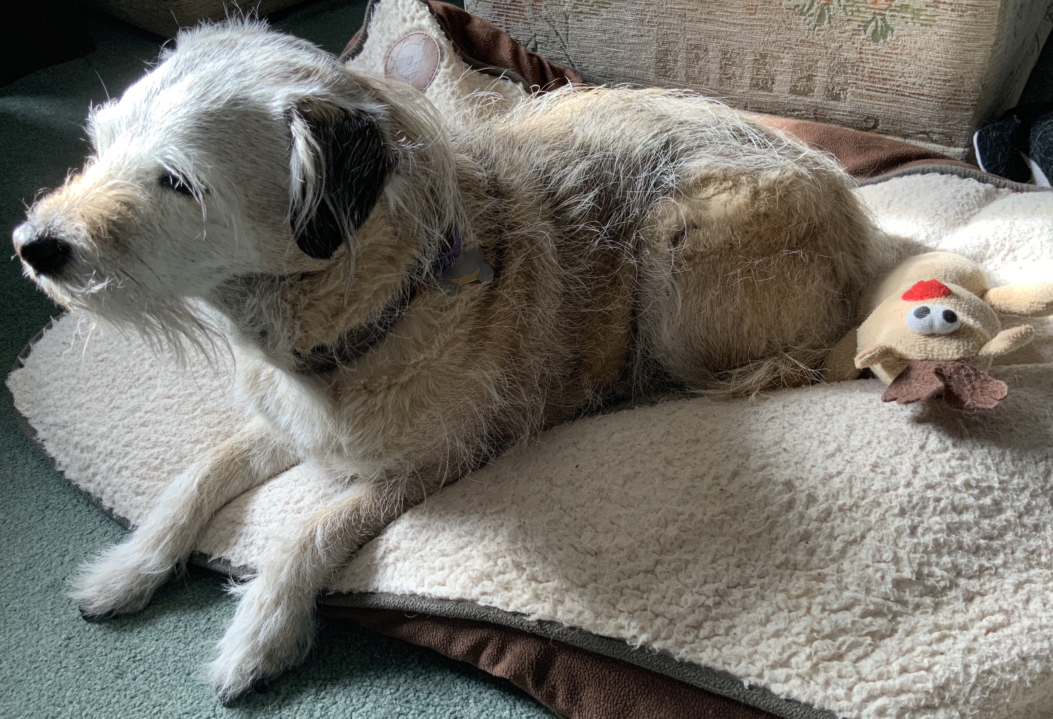 Sheās giving me the eye after being told off chewing one of the girls dolls, now with her toy bone.