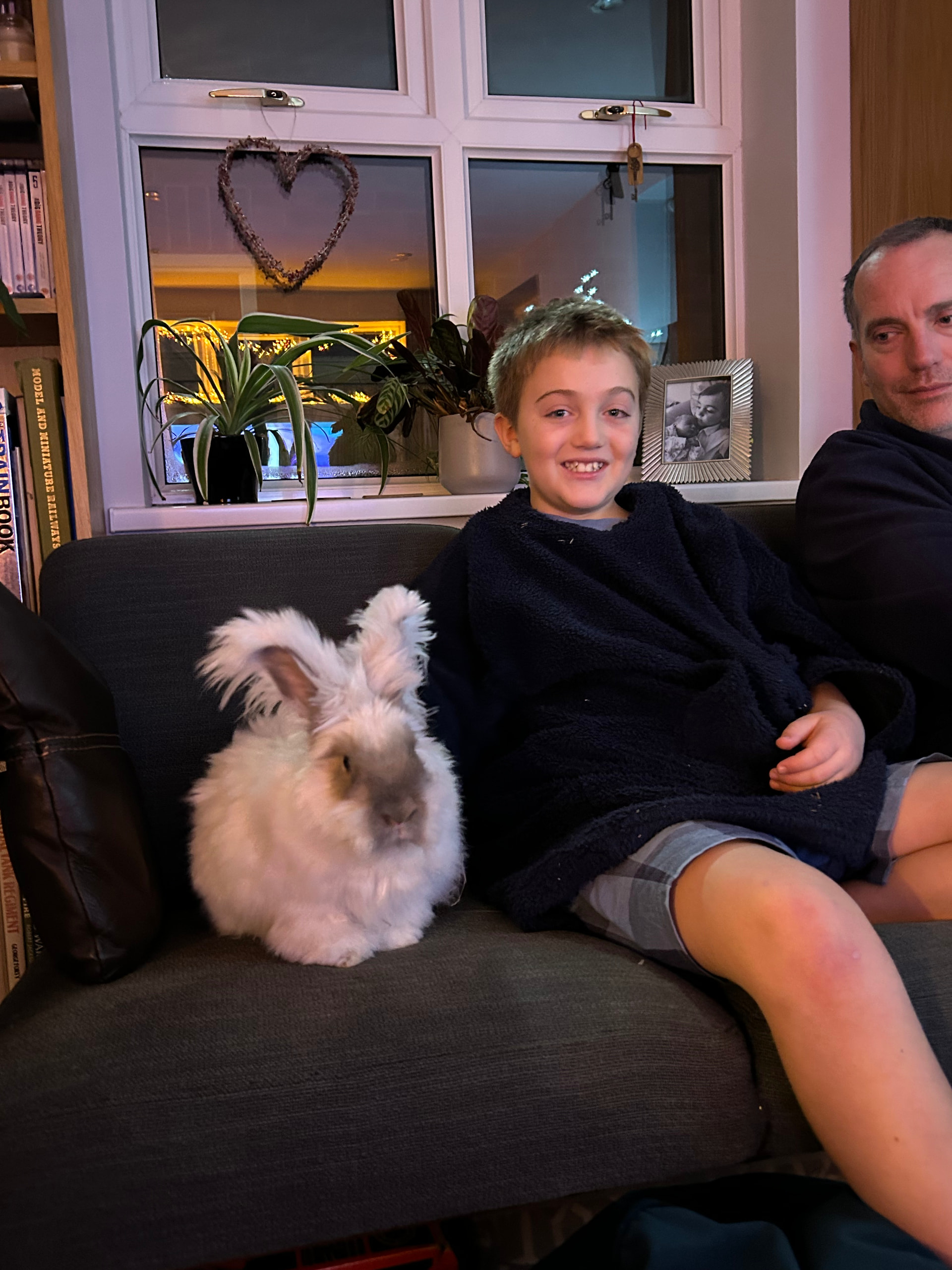 The sunroom ‘listening’ position - watching Fantasia on Disney+. Your’s truly, James and Nugget, our English Angora.