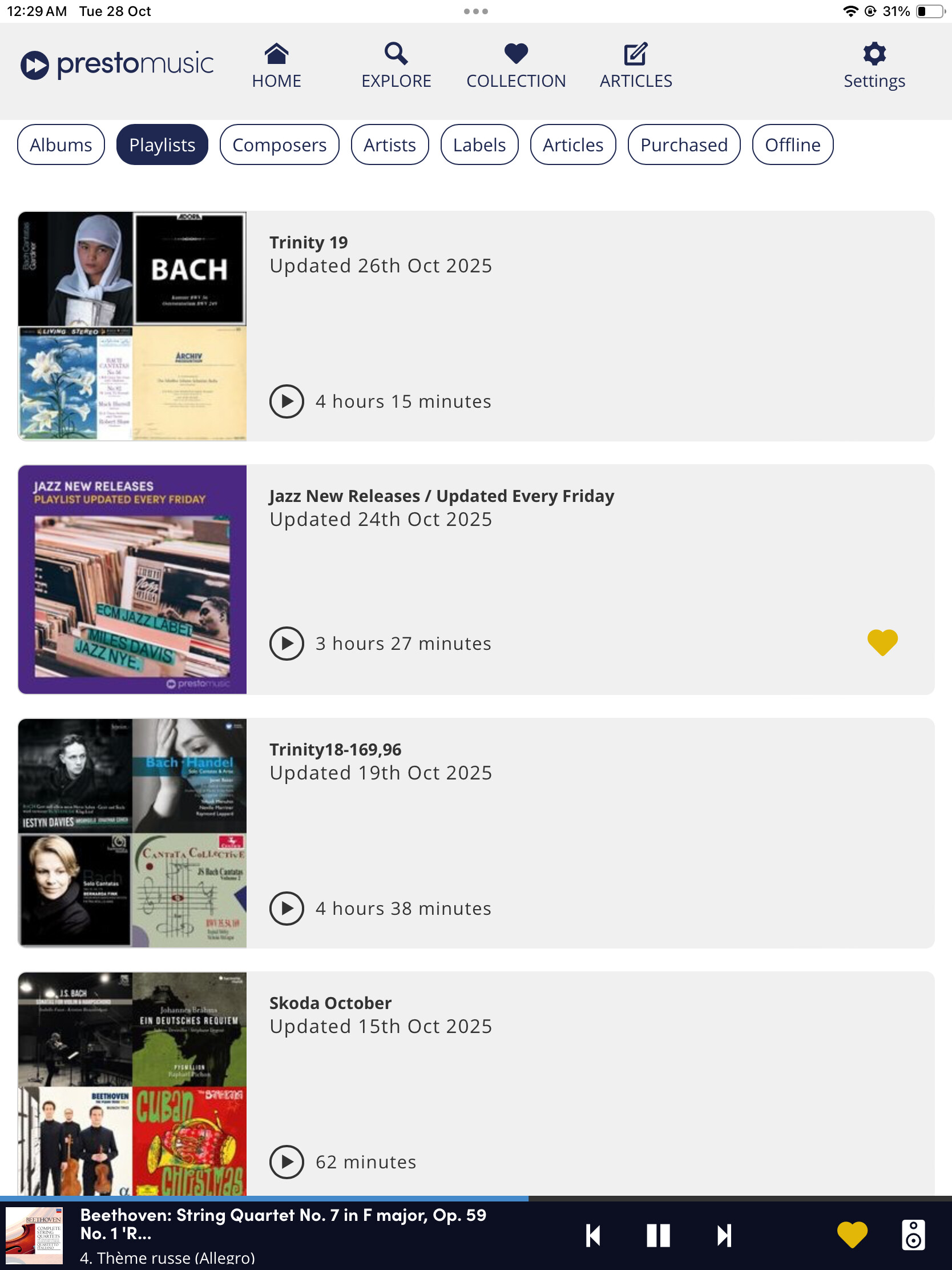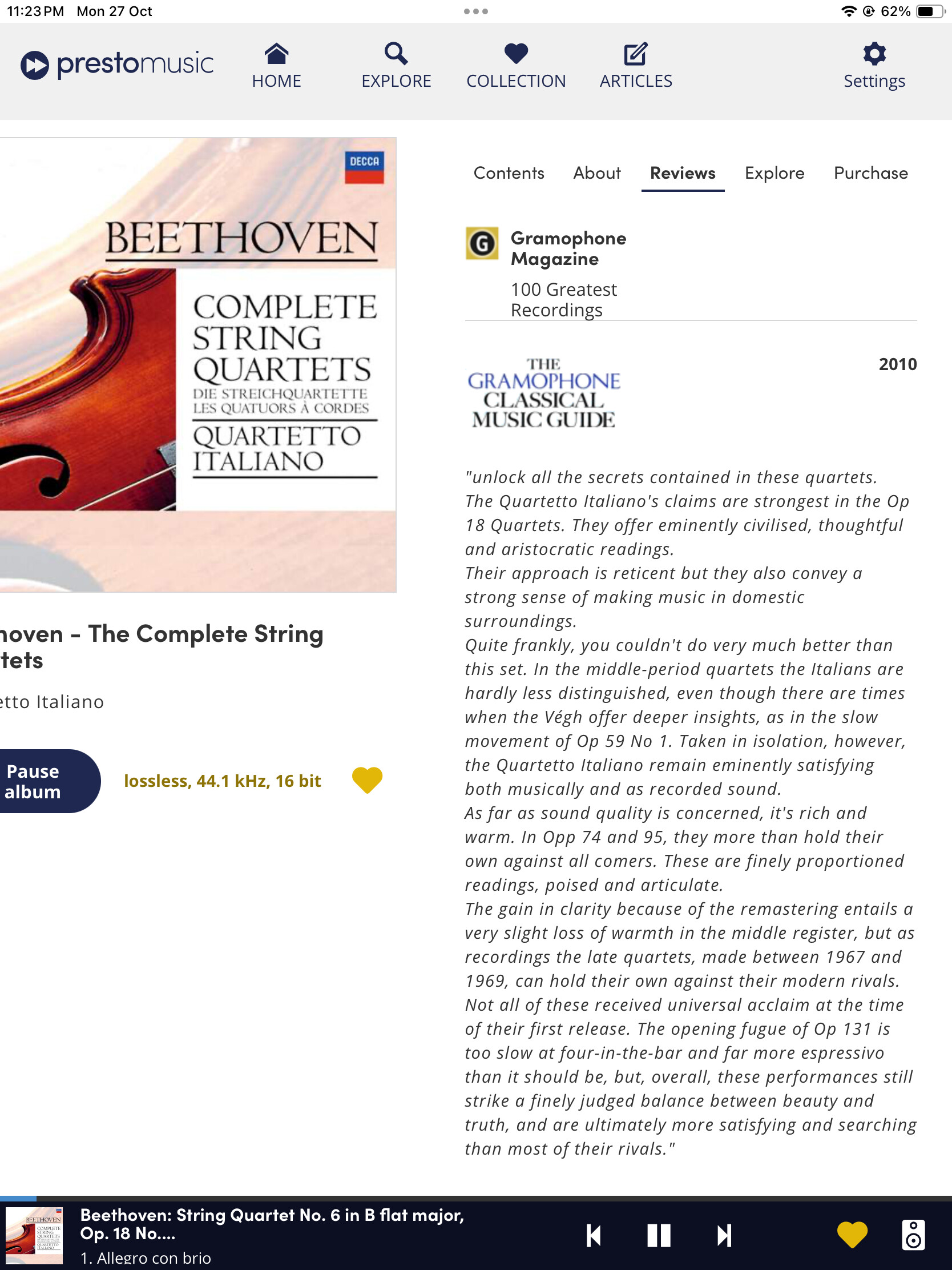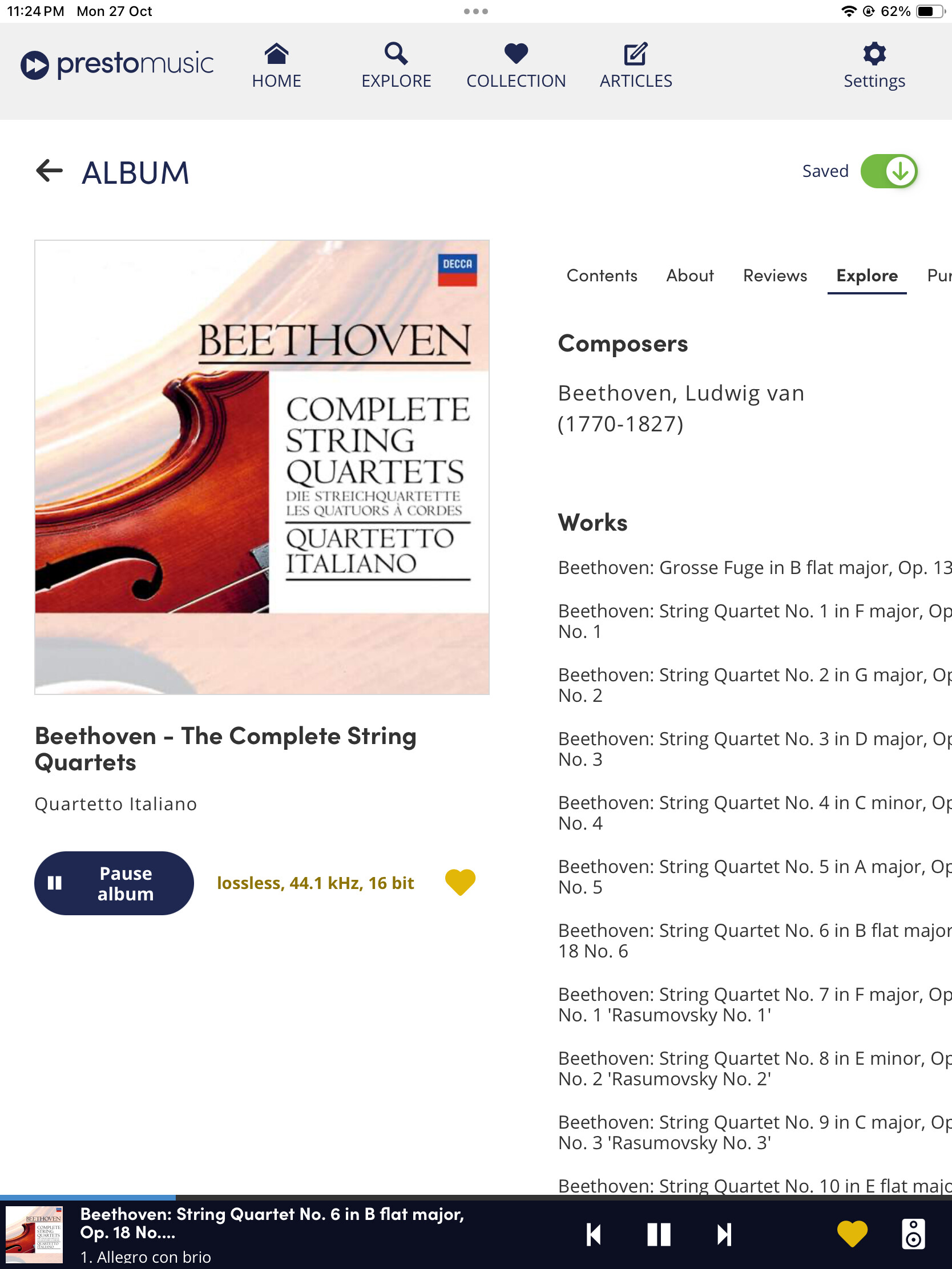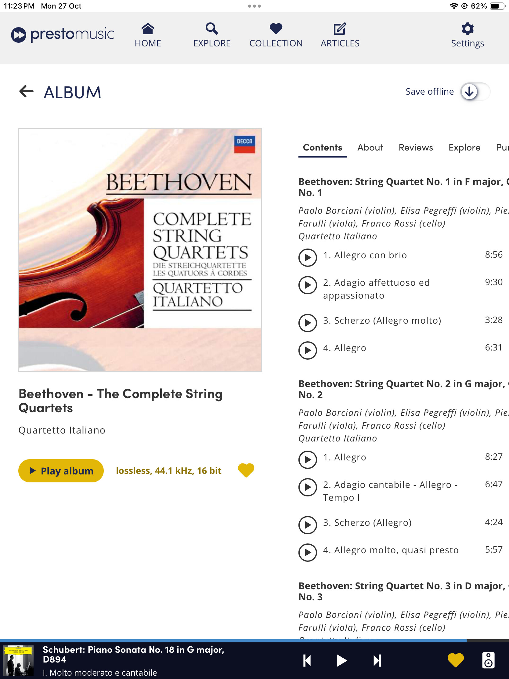 The last photo shows how I have this saved for offline listening. I love the Quartetto dearly and listen to them play Beethoven whilst ploughing my fields. This I do from my iPhone to a pair of B&W Px7 noise cancelling headphones.