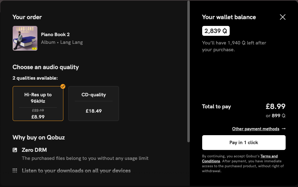 @HungryHalibut Is there a ‘buy it now’ option within Qobuz Sublime; ie if you’re listening to something you decide you like enough to want to buy, can you just hit the ‘buy it now’ button or are purchases always a separate process through the Qobuz Store pages?