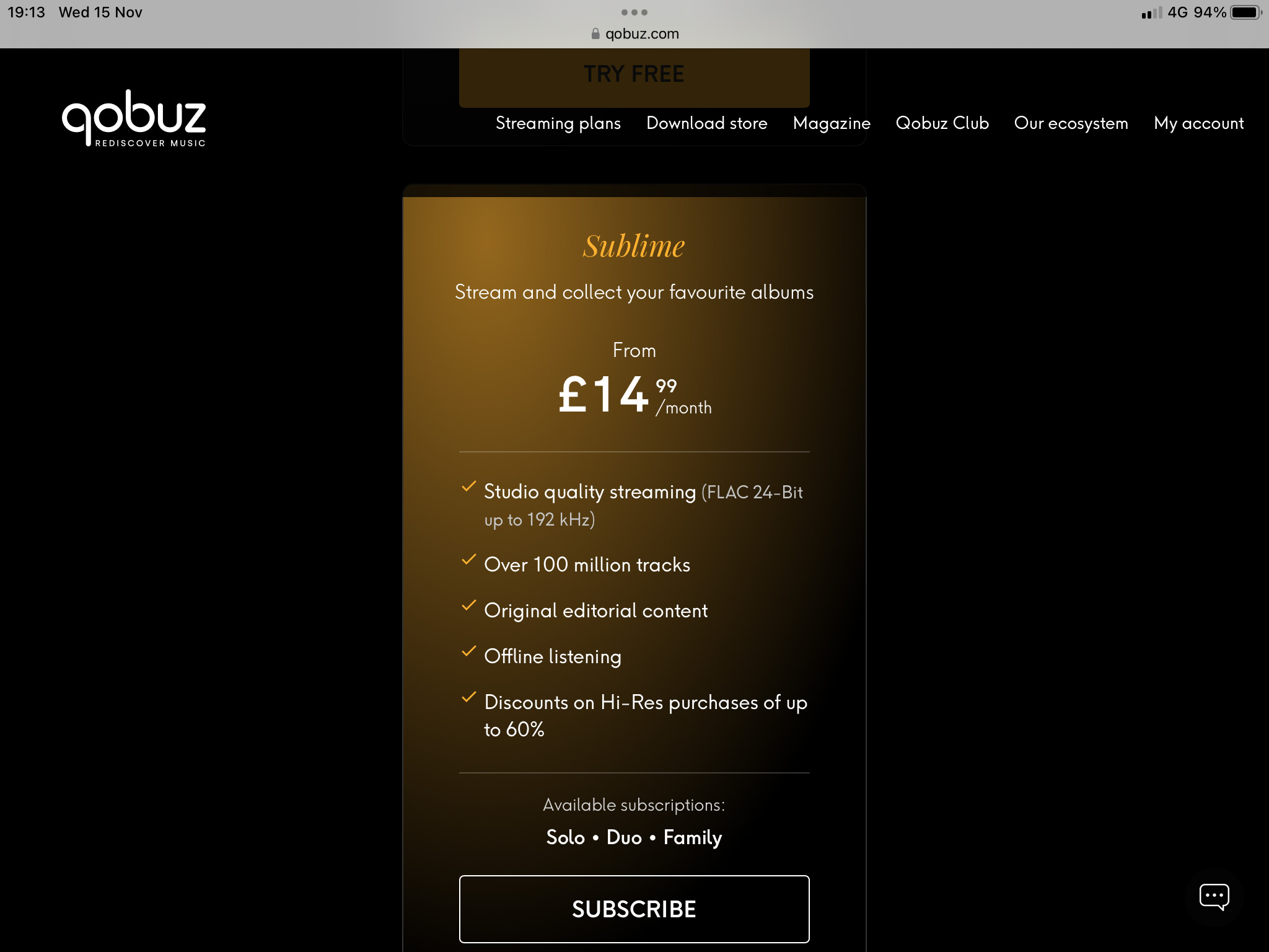 I also find Qobuz billing methods hard to decipher. My account says I have Qobuz studio, which I think is around $10 dollars a month here in Canada.
