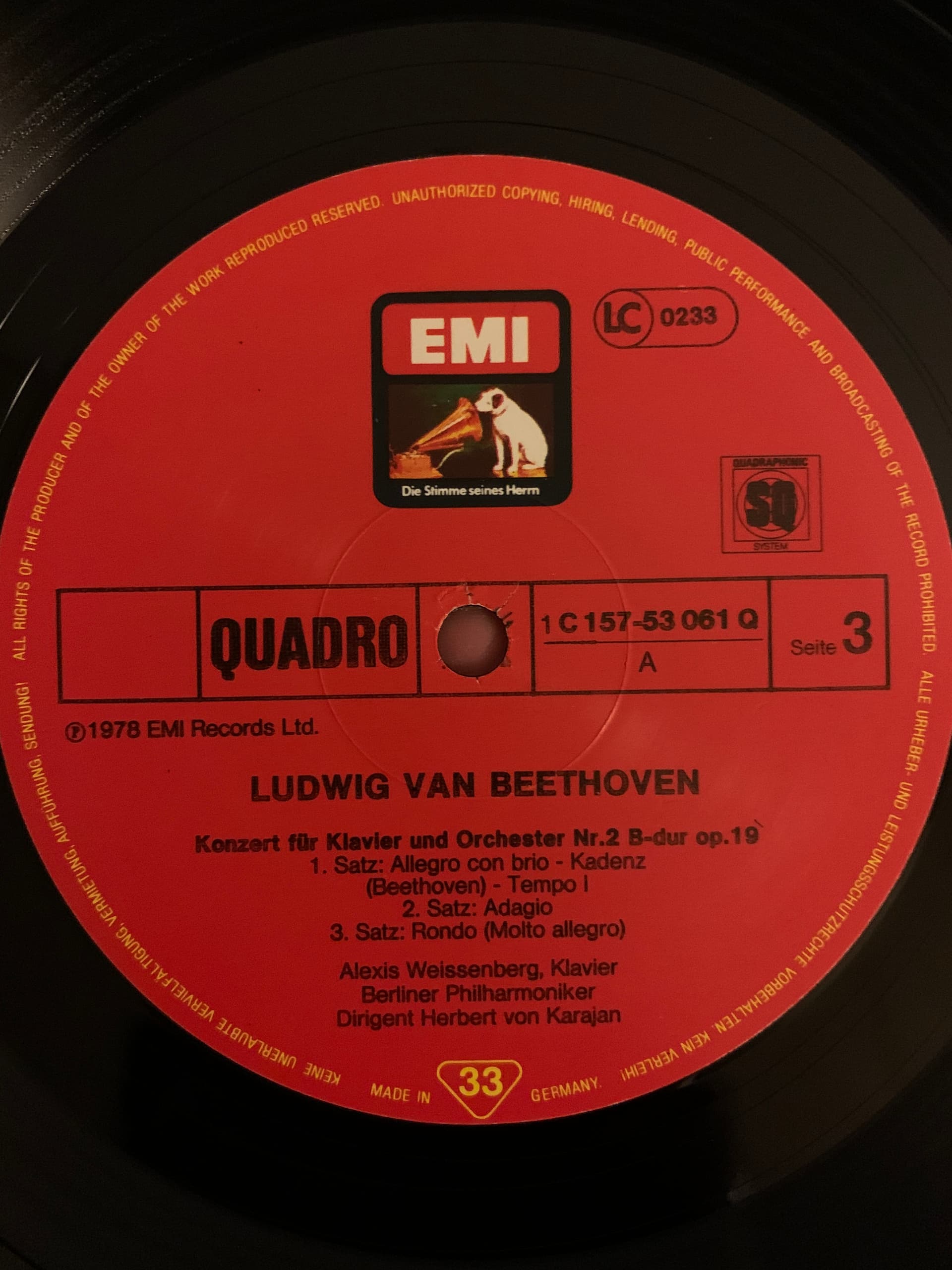 Here’s the main culprit Richard. It’s Labelled ‘SQ’ and was a cellophane sealed, unopened box set bought online from Oxfam. Quiet surfaces for sure, but sounds odd. The Piano is half a mile wide and the Orchestra disappears anytime other than when playing especially loud. Hard to enjoy really.